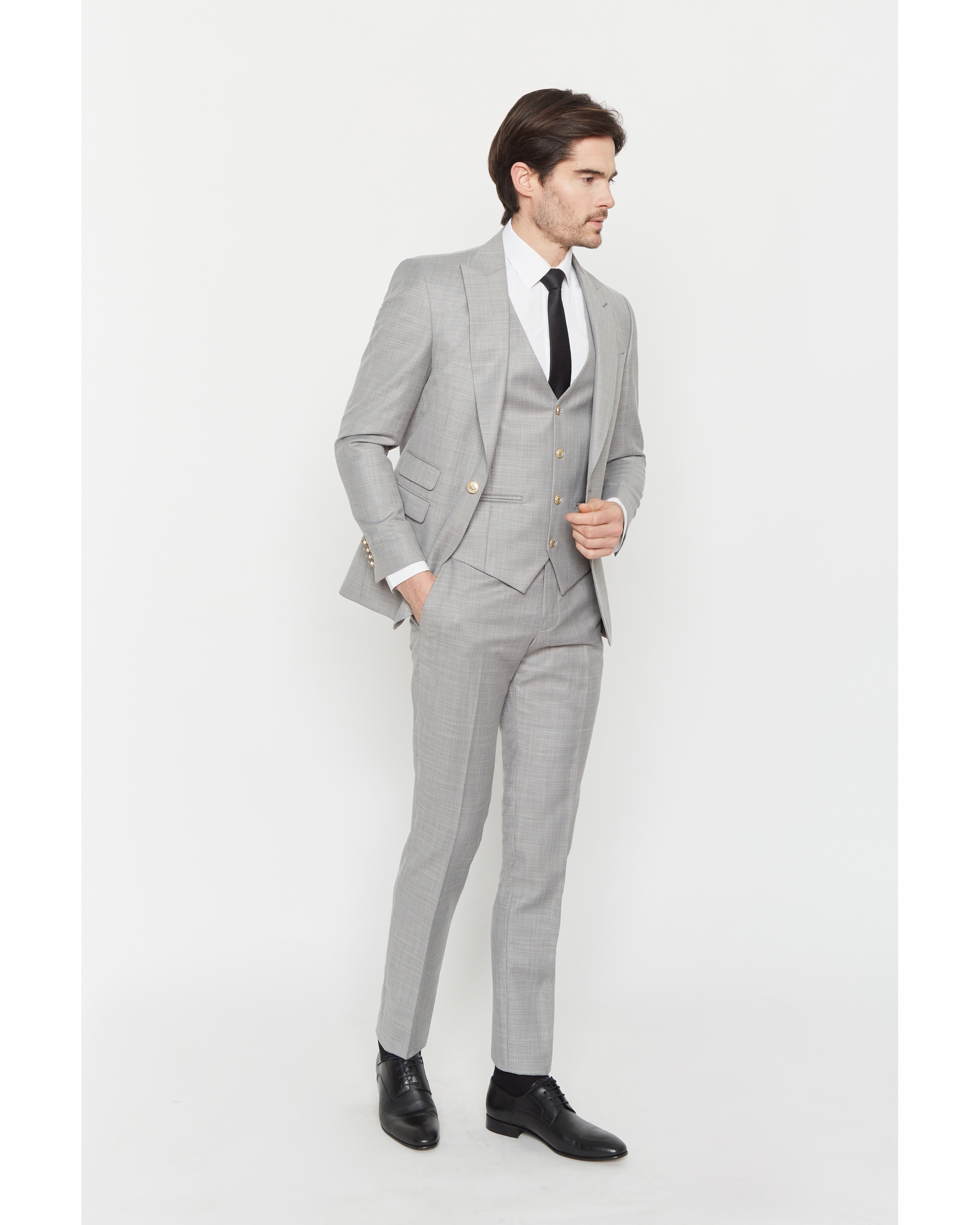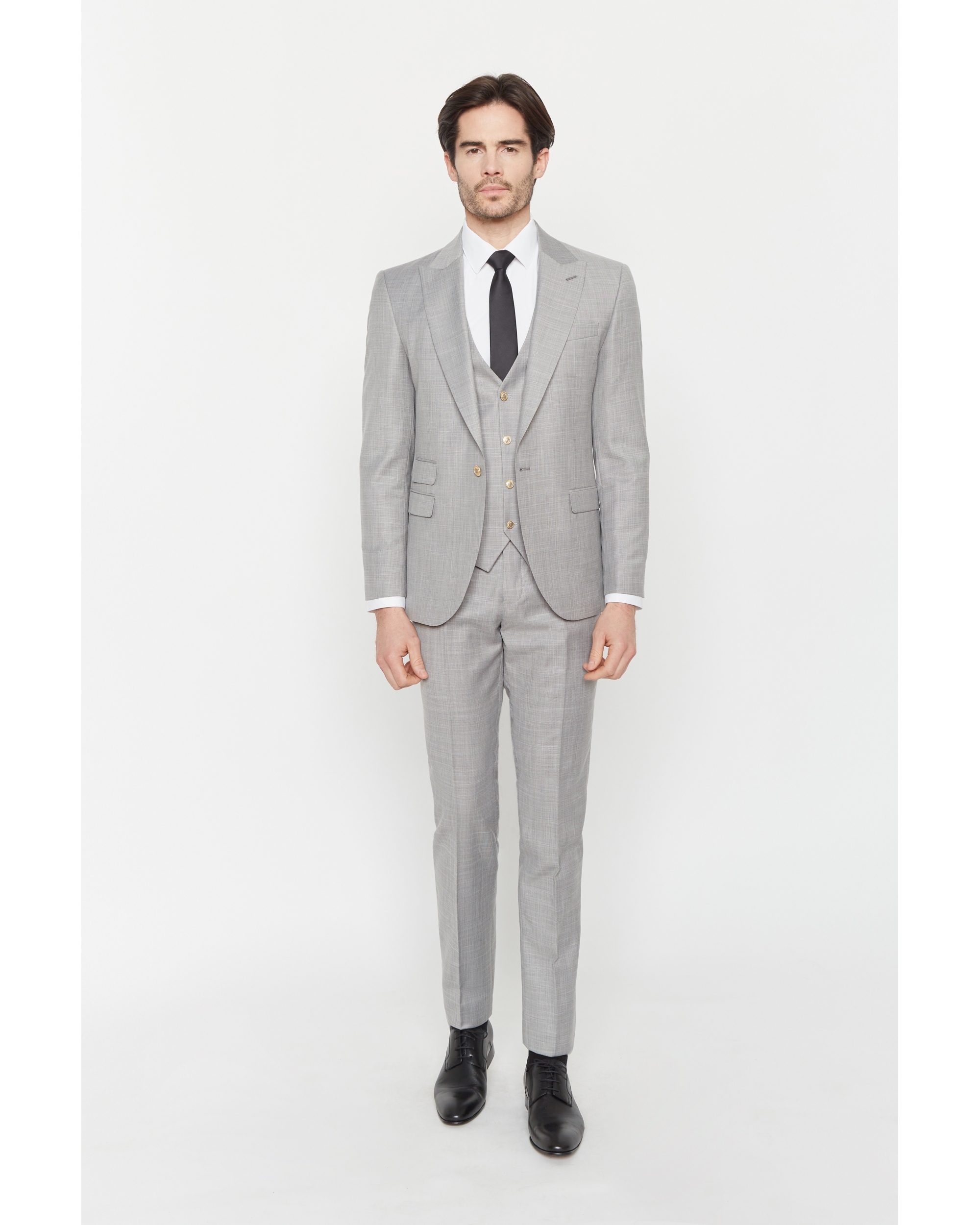 Le shelby est un costume de ville a l'aspect chine en fil a fil.La veste est a 1 bouton avec son gilet assorti.Son col pointe lui donne une tenue habillee et le tissu comporte du lycra pour un confort extreme.