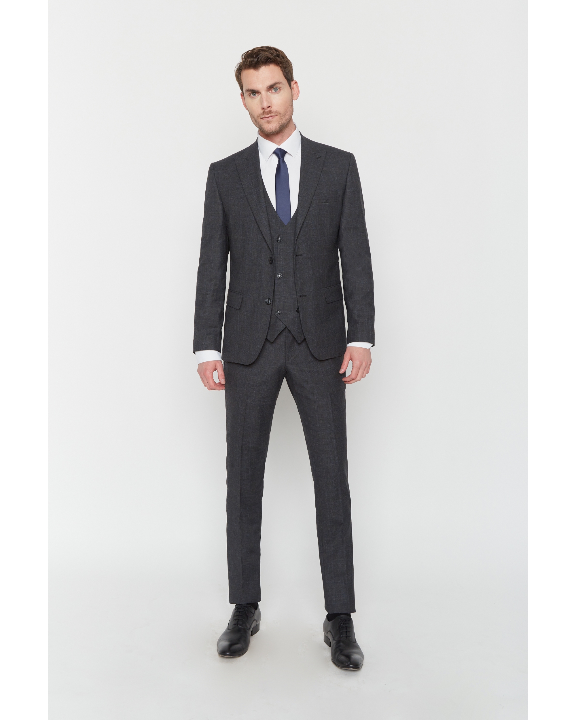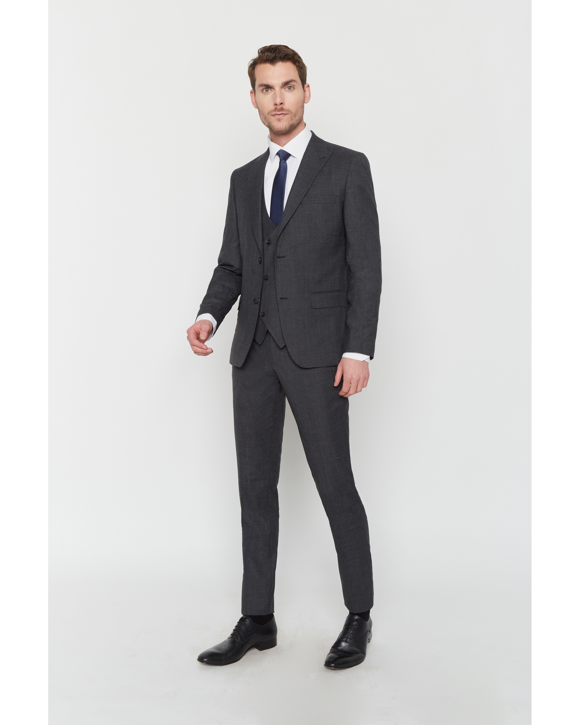 Costume 3 pieces de ville.Veste col pointe cintré 2 boutons.Tissu en carreaux prince de galles.pantalon slim,poches italiennes.Le tissu comporte du lycra pour un confort exceptionnel