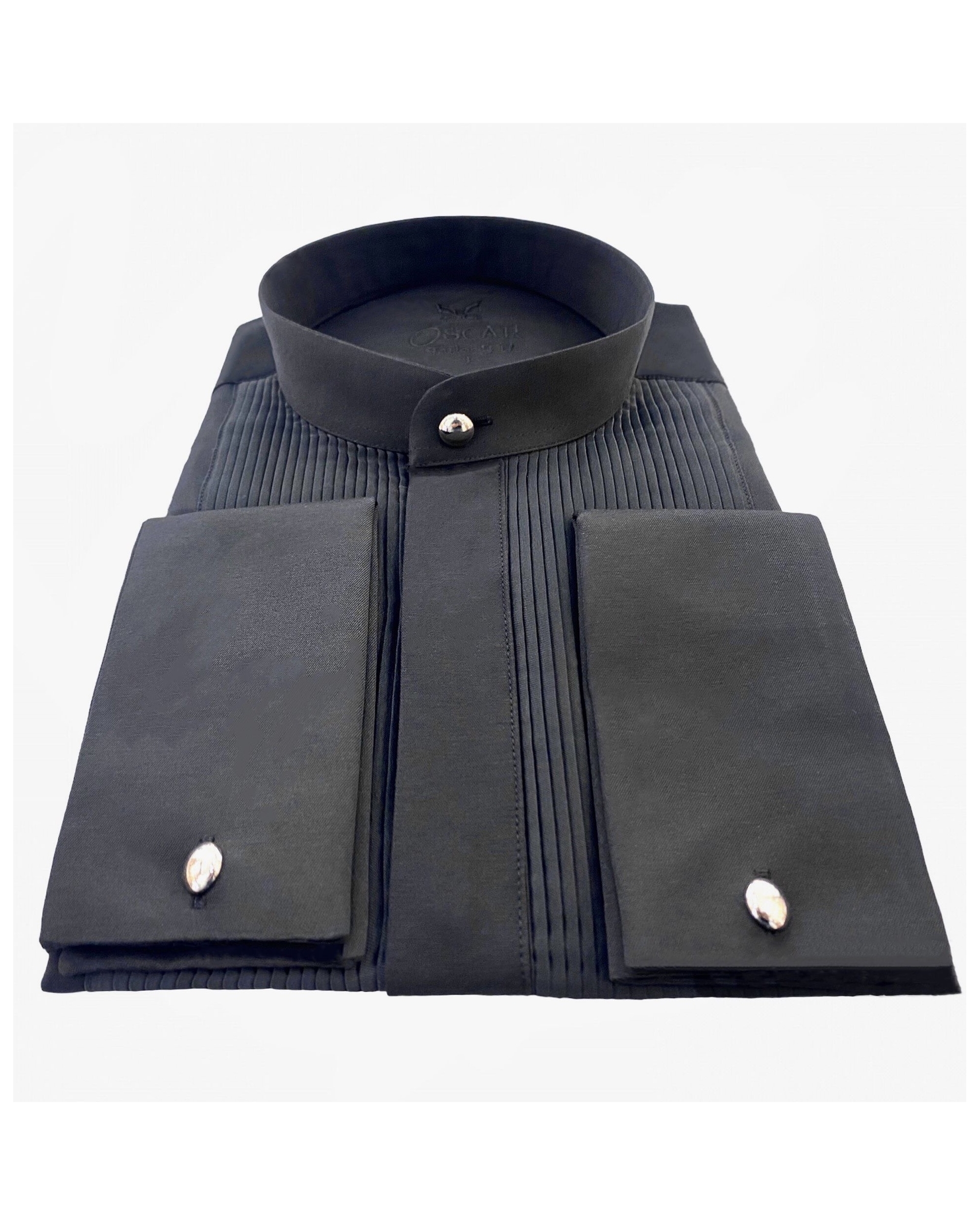 Cette chemise fabriquée dans un tissu "facile à repasser" vous donnera une élégance et un confort pour toute vos grandes occasions. Chemise col Mao avec plastron plissé et patte de boutonnages caché. Poignée mousquetaire avec bouton métal argenté amovible