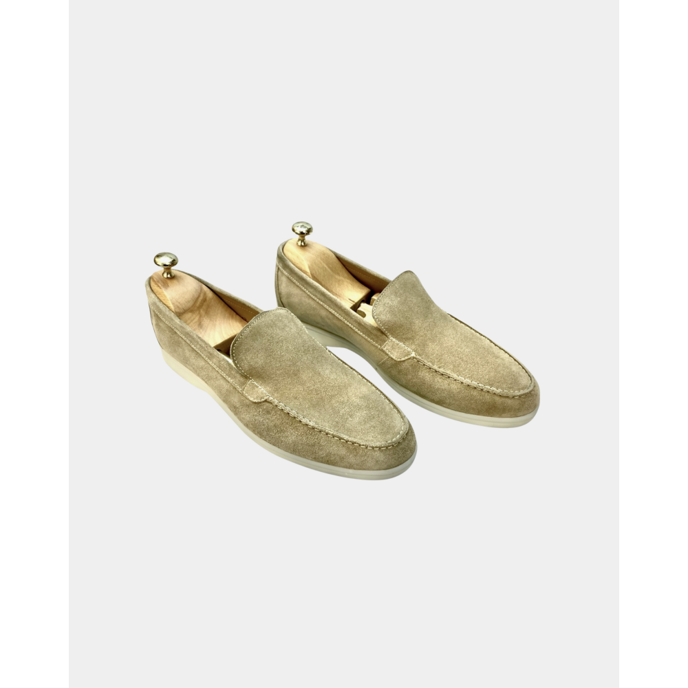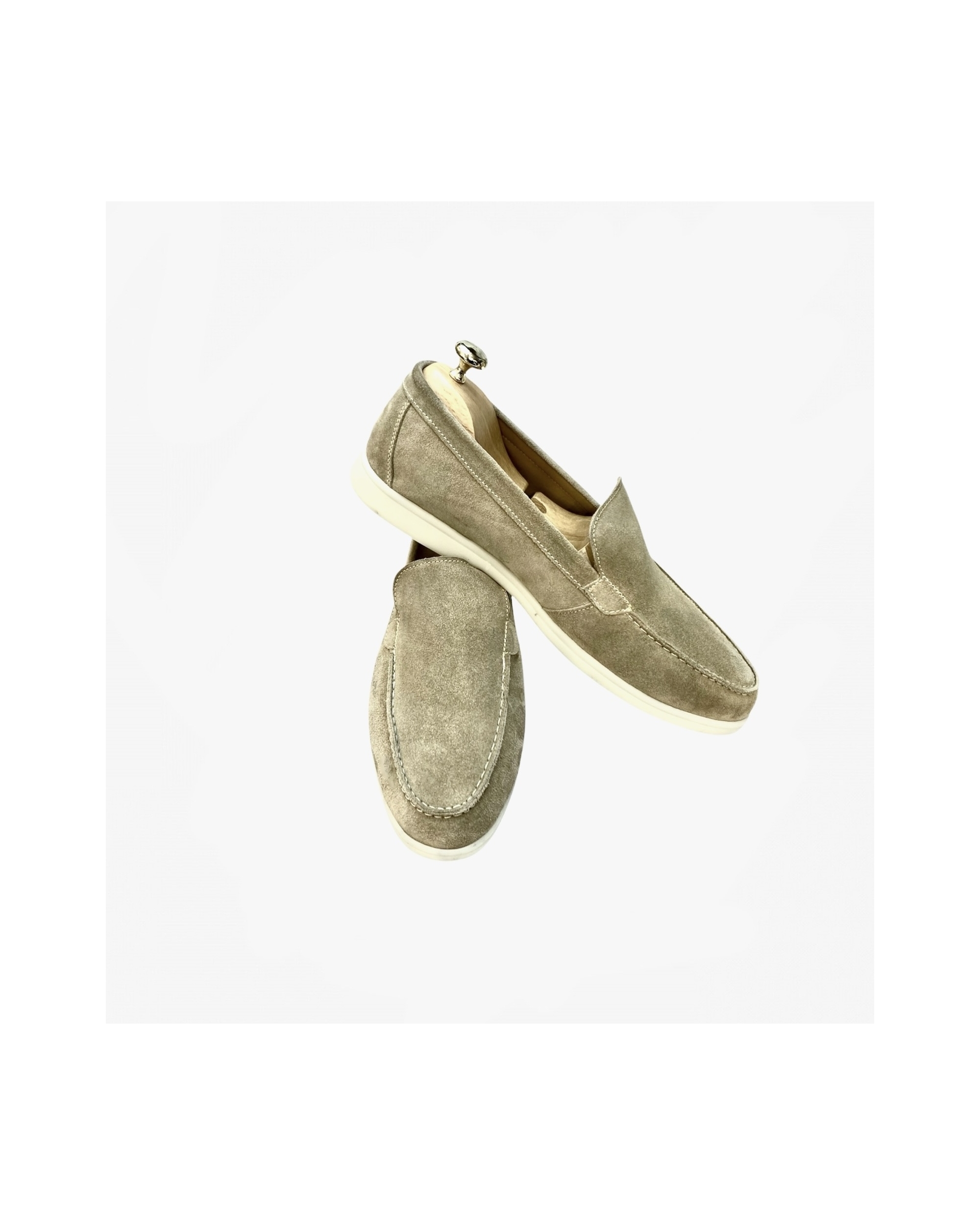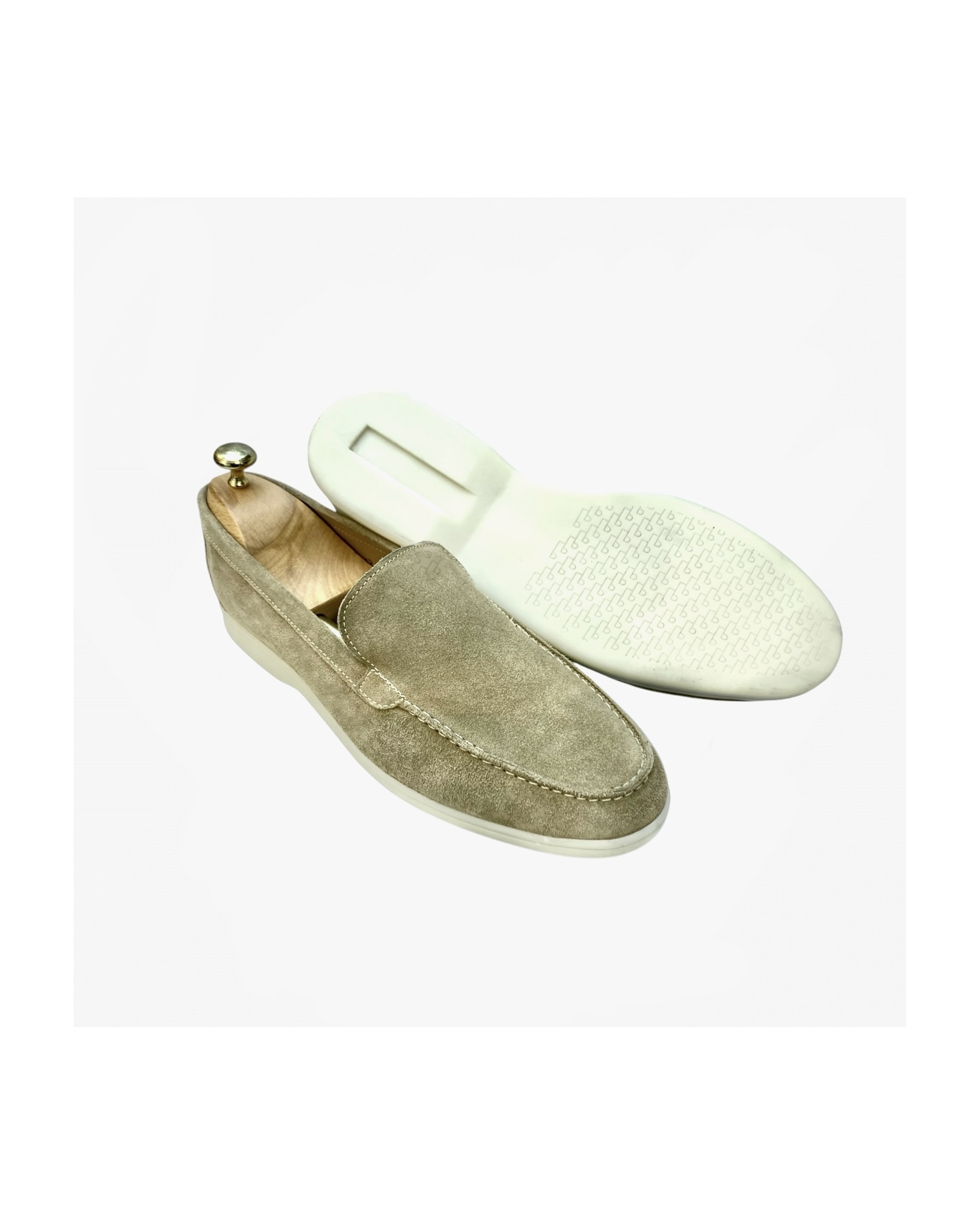 Réalisée en Daim italien, et intégralement doublées en cuir de vachette. Légère et très confortable elle vous accompagnera tout au long de votre journée et soirée. Elle peut être portée avec un costume, un pantalon, un jean ou un short. Vous ne les quitterez plus jamais.