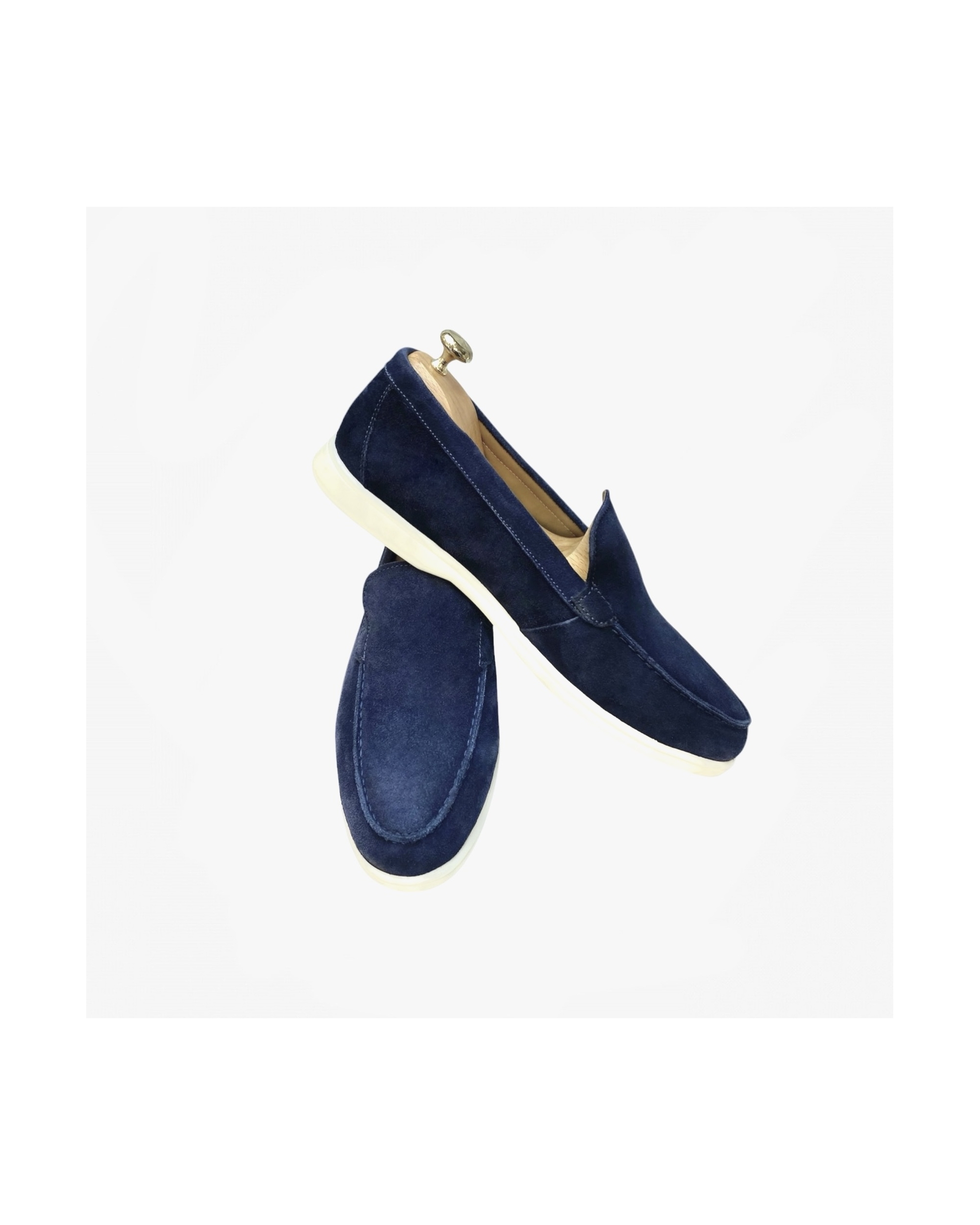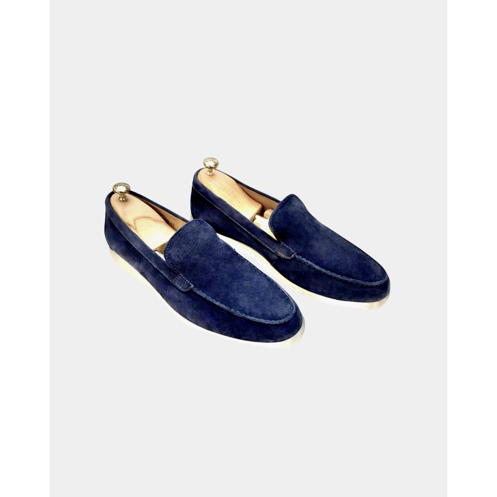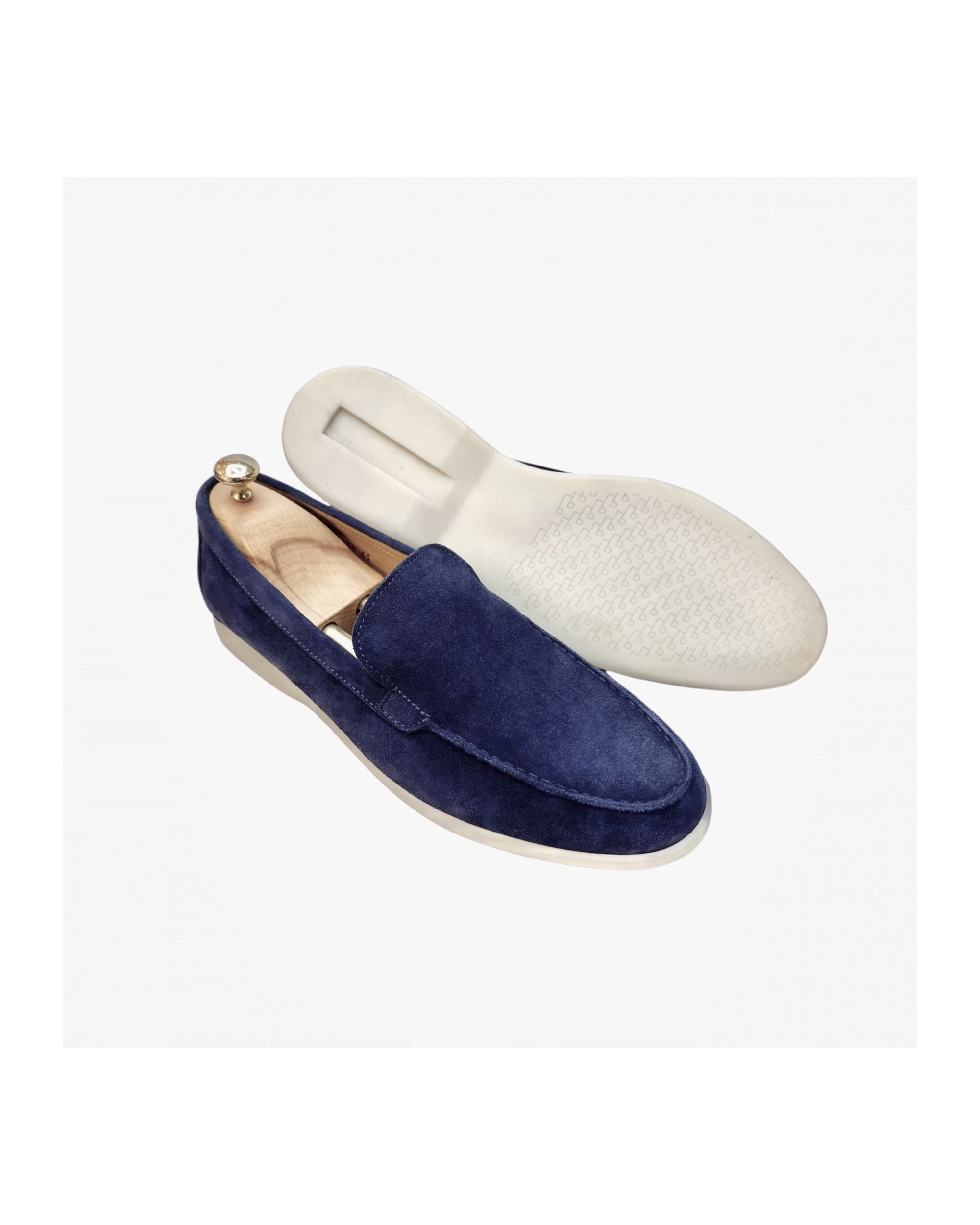 Réalisée en Daim italien, et intégralement doublées en cuir de vachette. Légère et très confortable elle vous accompagnera tout au long de votre journée et soirée. Elle peut être portée avec un costume, un pantalon, un jean ou un short. Vous ne les quitterez plus jamais.