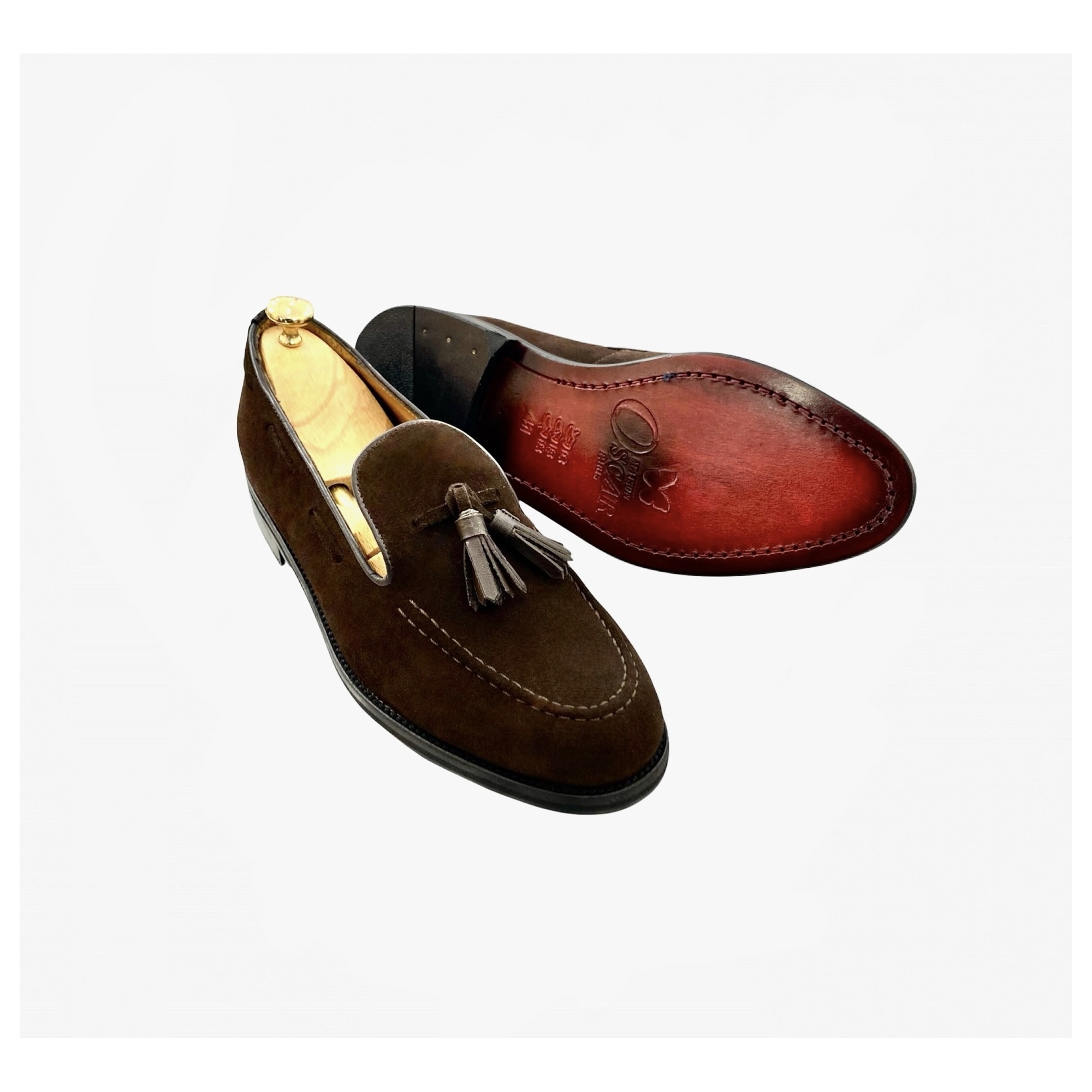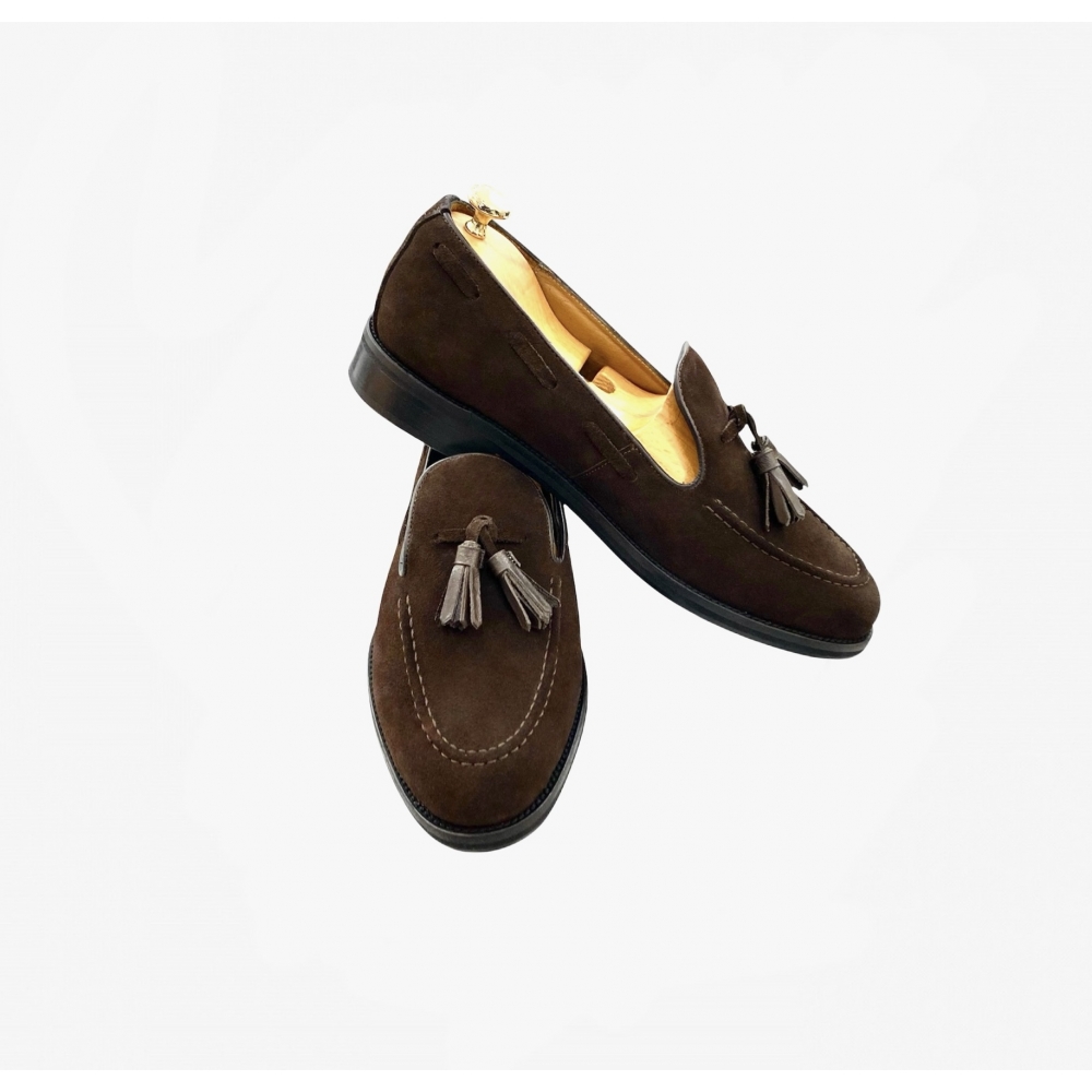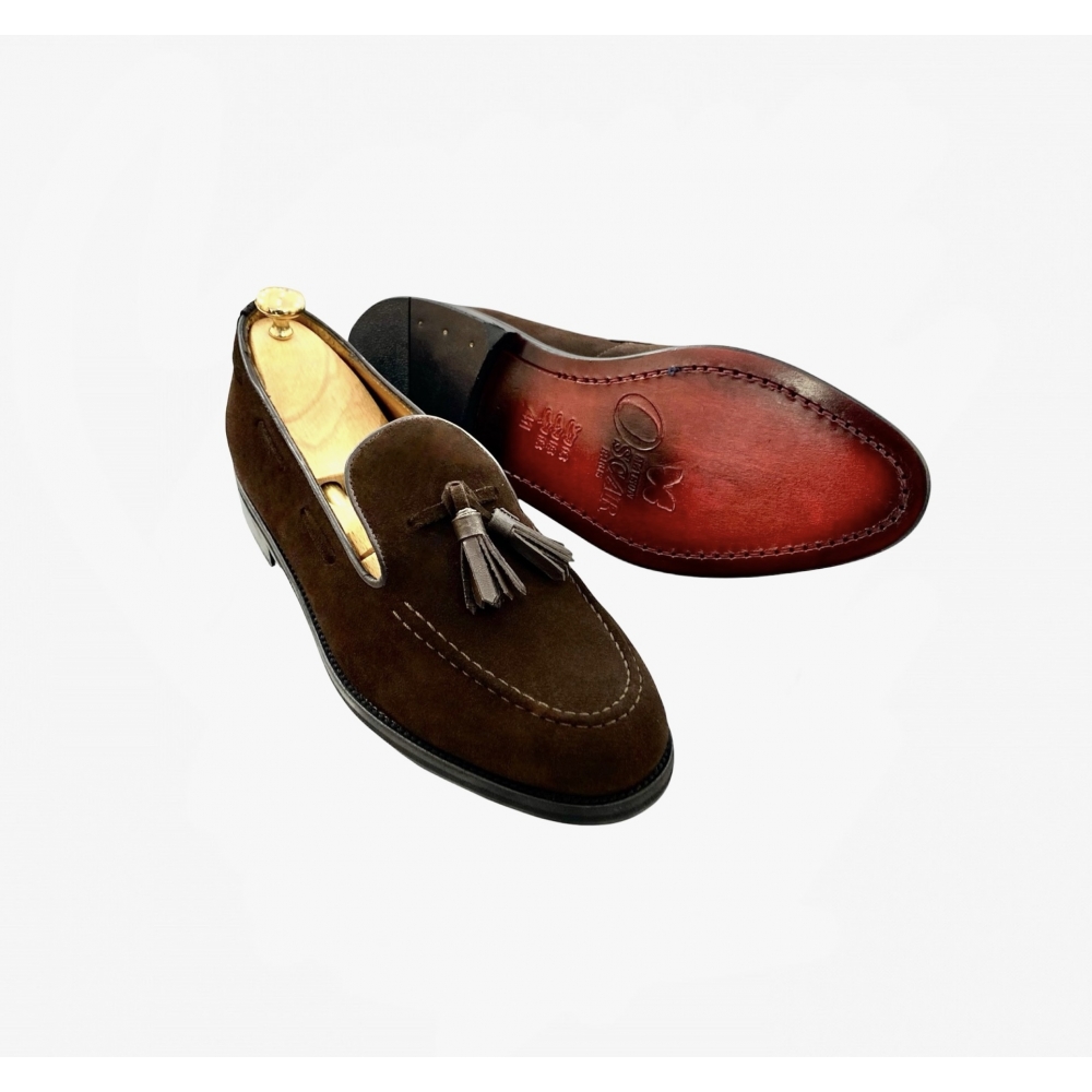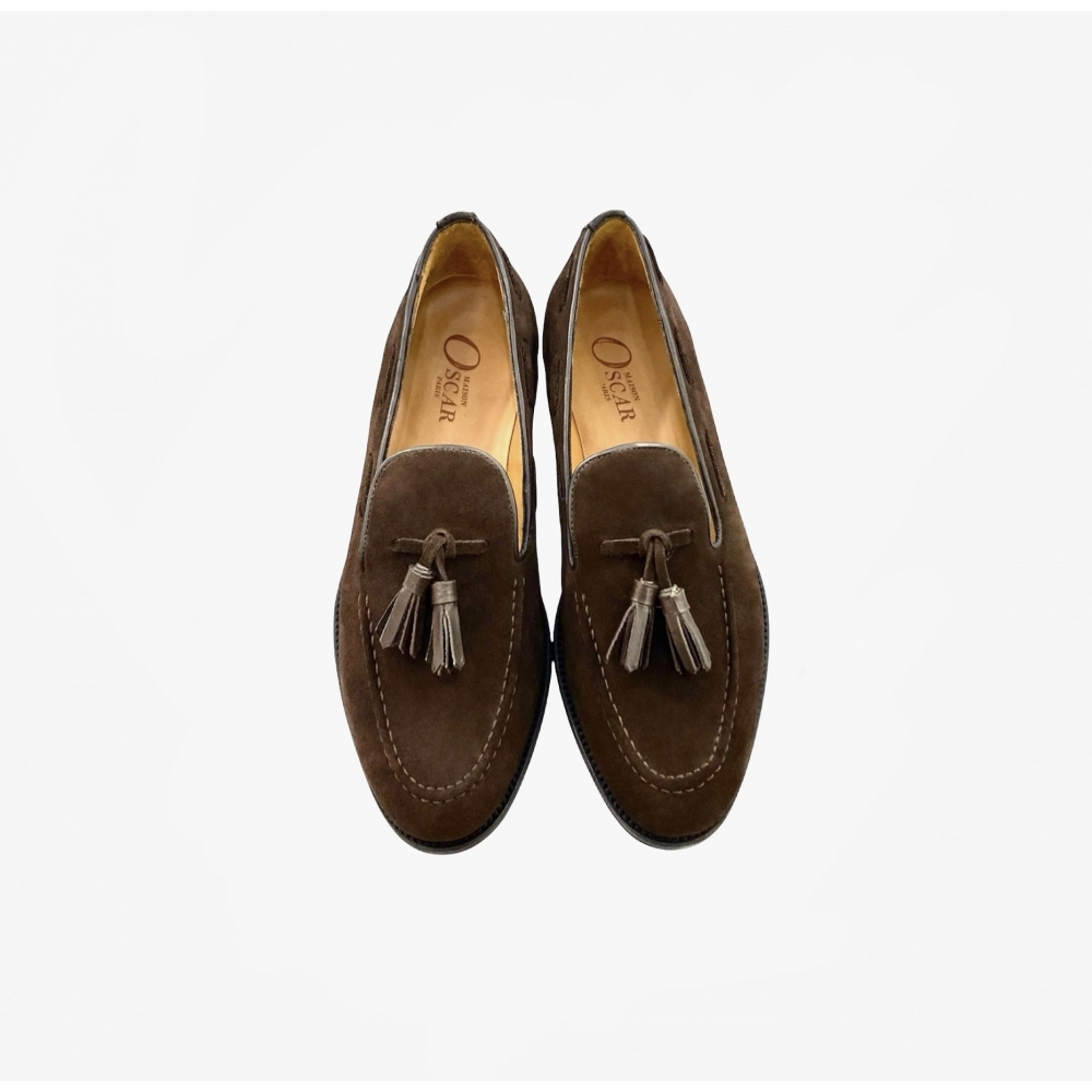 Ce mocassin à Pampilles en Daim est intégralement doublées en cuir de vachette et cousue main sur semelle doublé en cuir. Confortable, elle vous accompagnera tout au long de votre journée et vos soirées les plus élégantes.