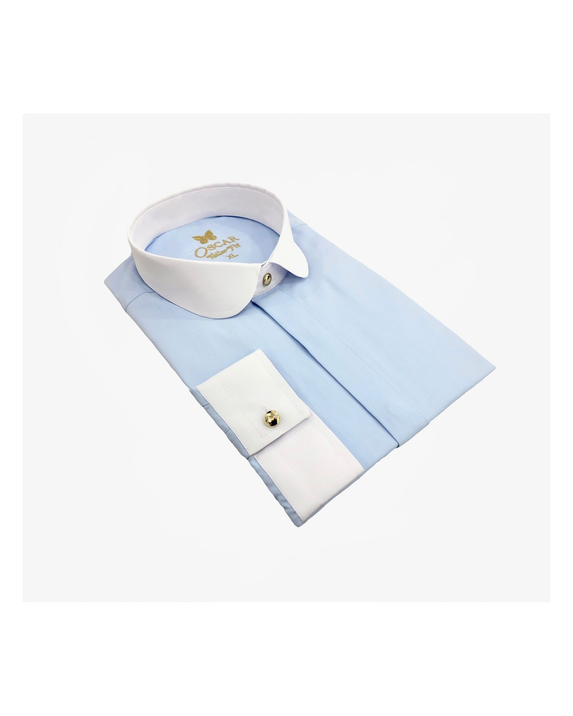 Cette chemise fabriquée dans un tissu ”facile à repasser” vous donnera un confort au quotidien. Son col rond et bouton métal doré vous assurera un look actuel et dynamique. Le poignet est mixte (bouton de manchette possible).