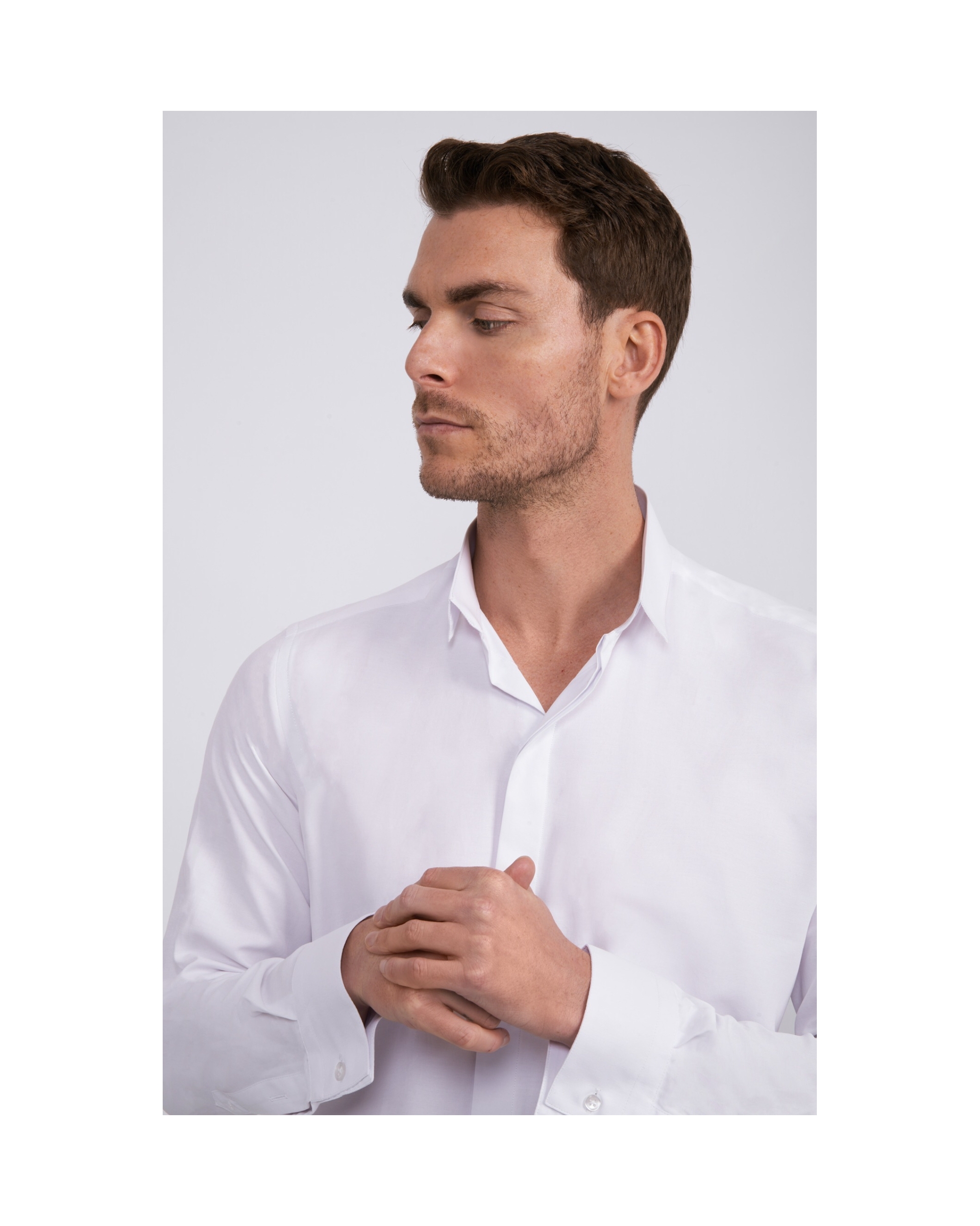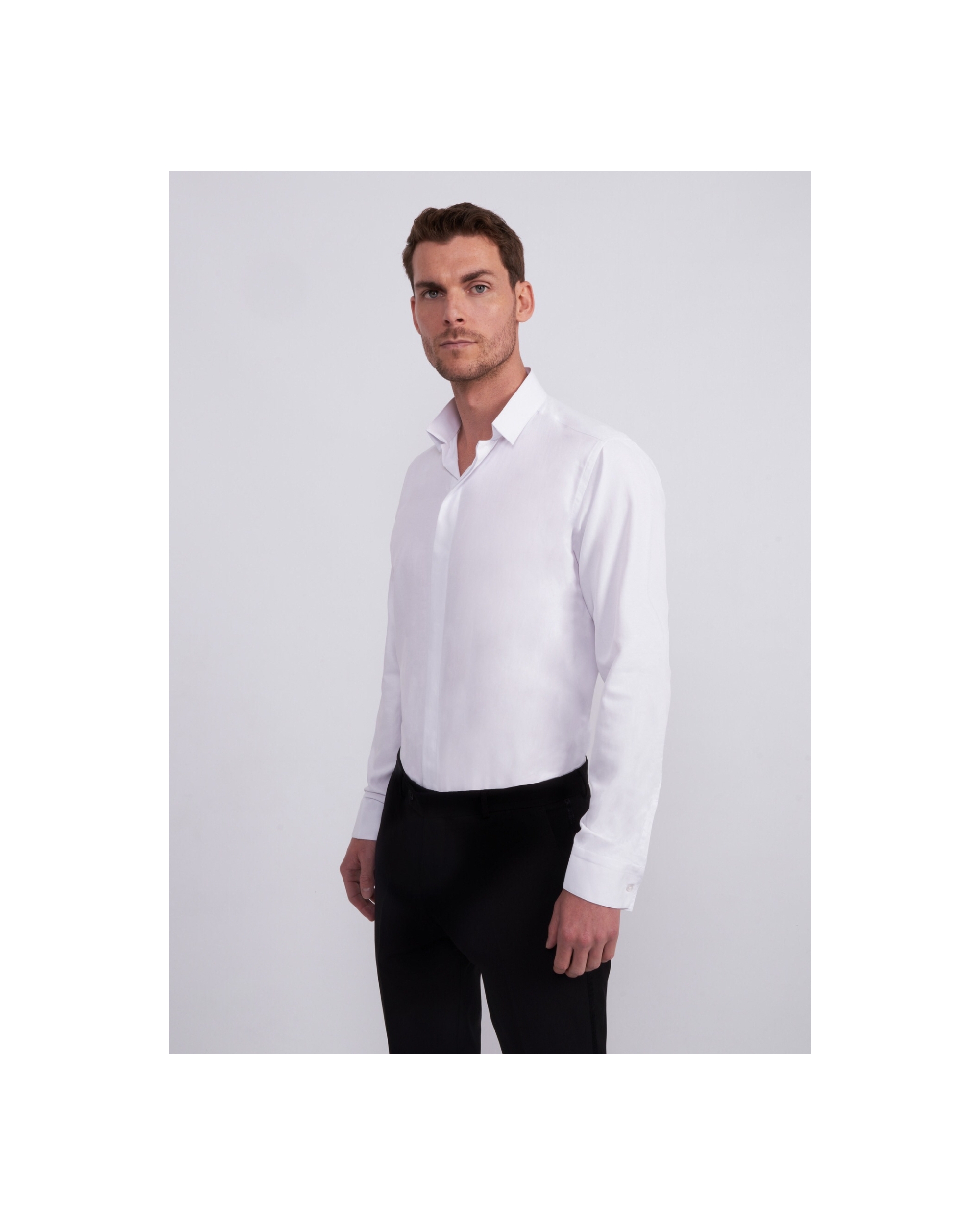 Cette chemise fabriquée dans un tissu ”facile à repasser” vous donnera un confort au quotidien. Son col inversé vous assurera un look actuel et dynamique. Le poignet est mixte (bouton de manchette possible).