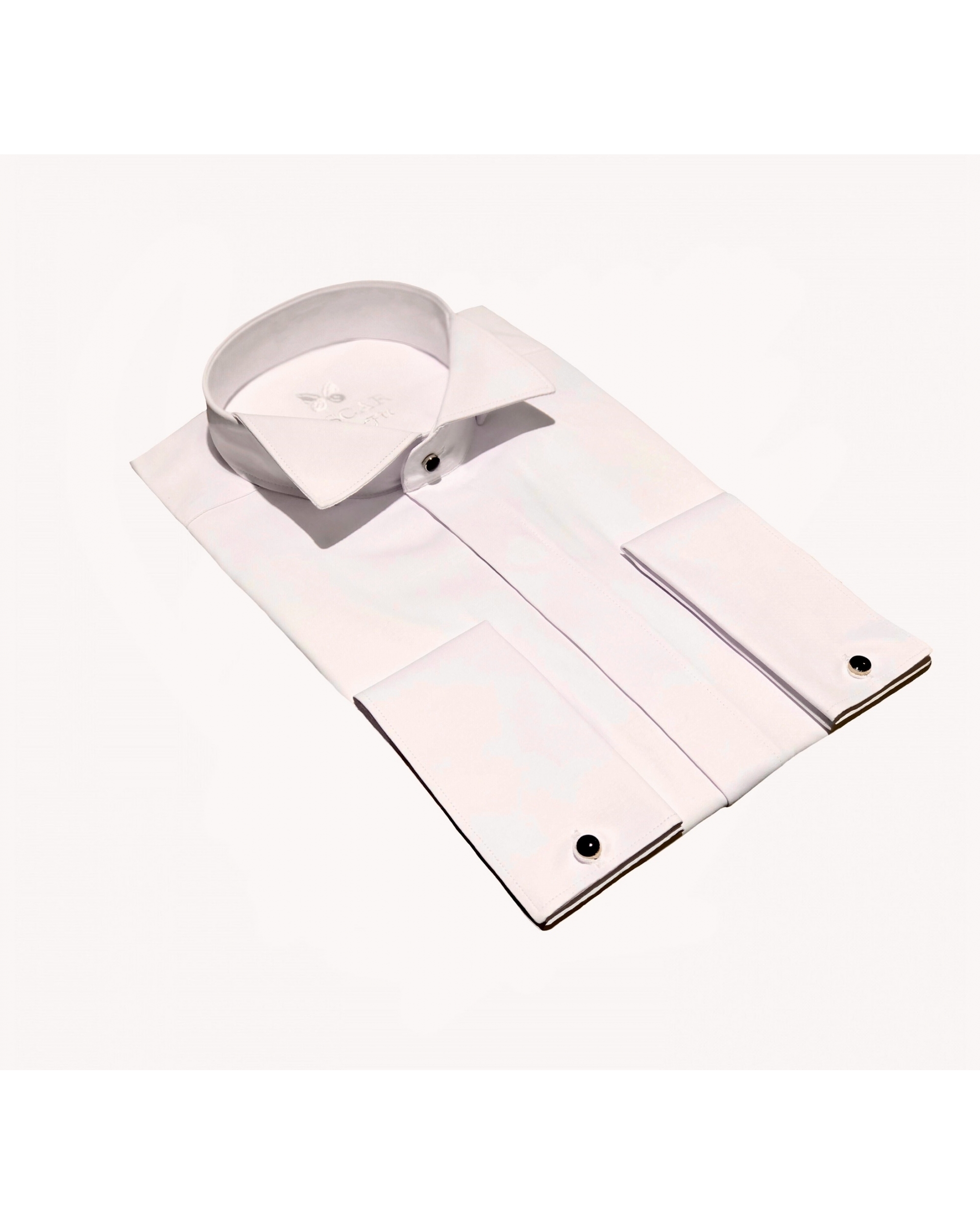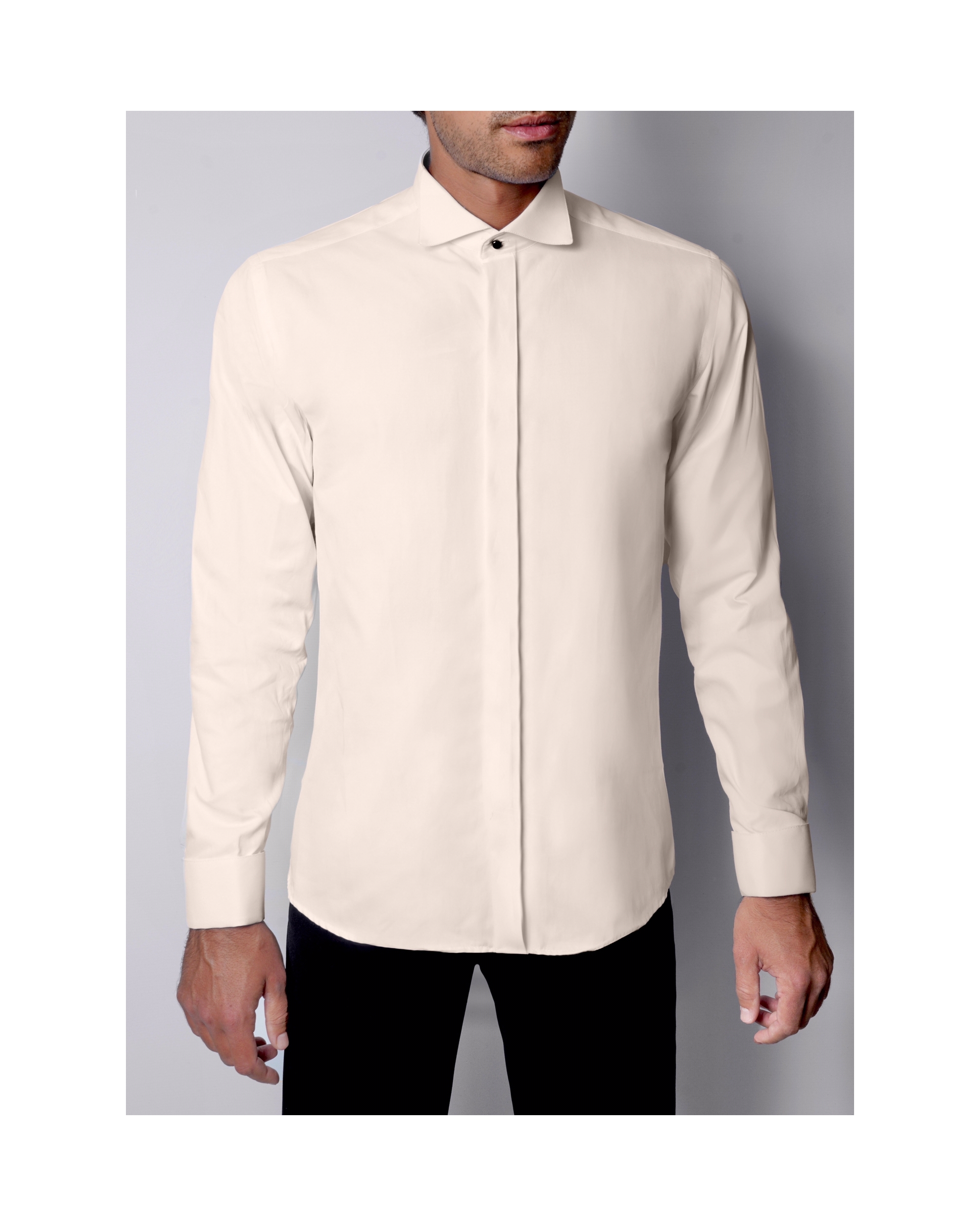 Cette chemise fabriquée dans un tissu "facile à repasser" vous donnera une élégance et un confort pour toute vos grandes occasions. Chemise col cassé avec patte caché pour le noeud pap + poignet mousquetaire.