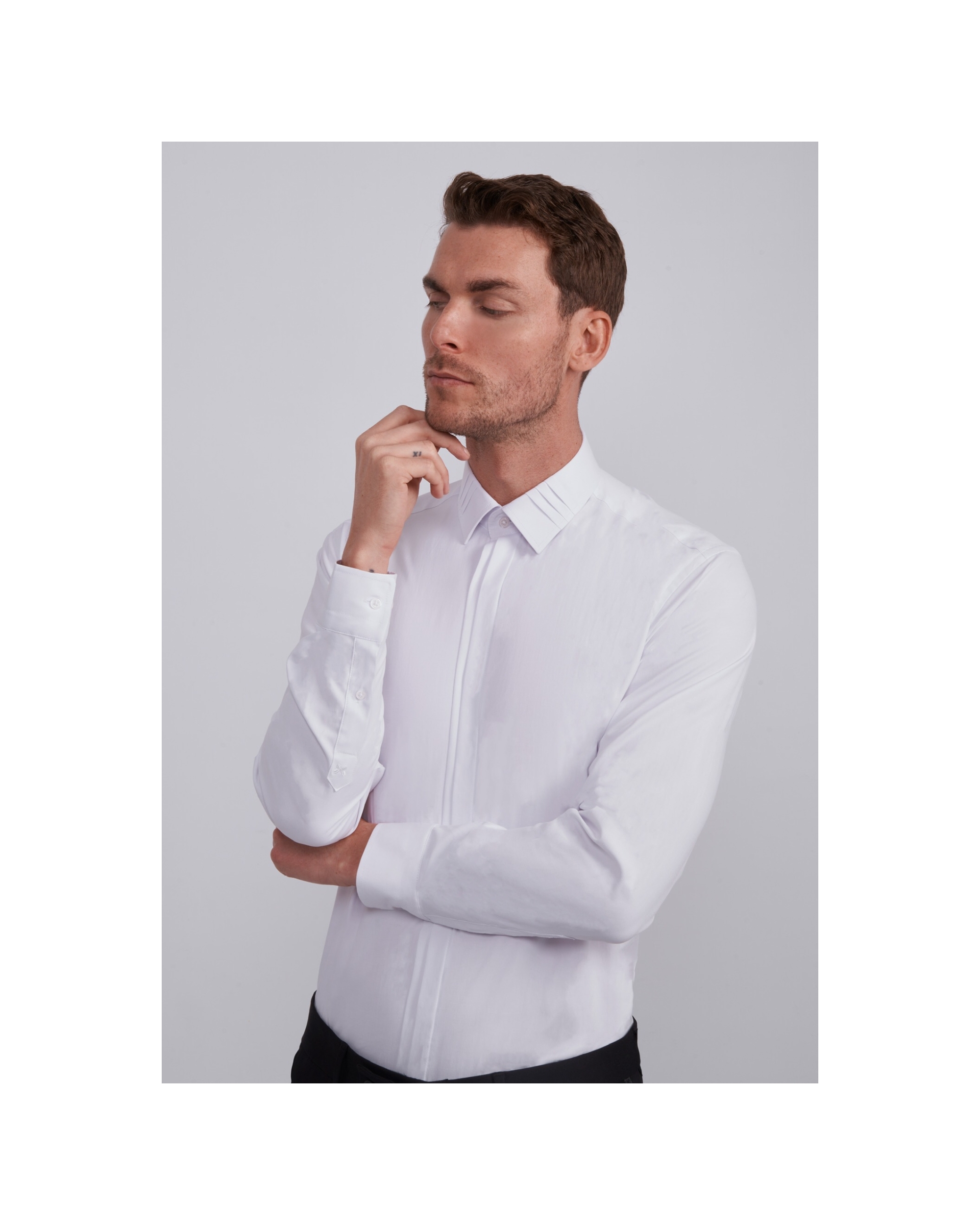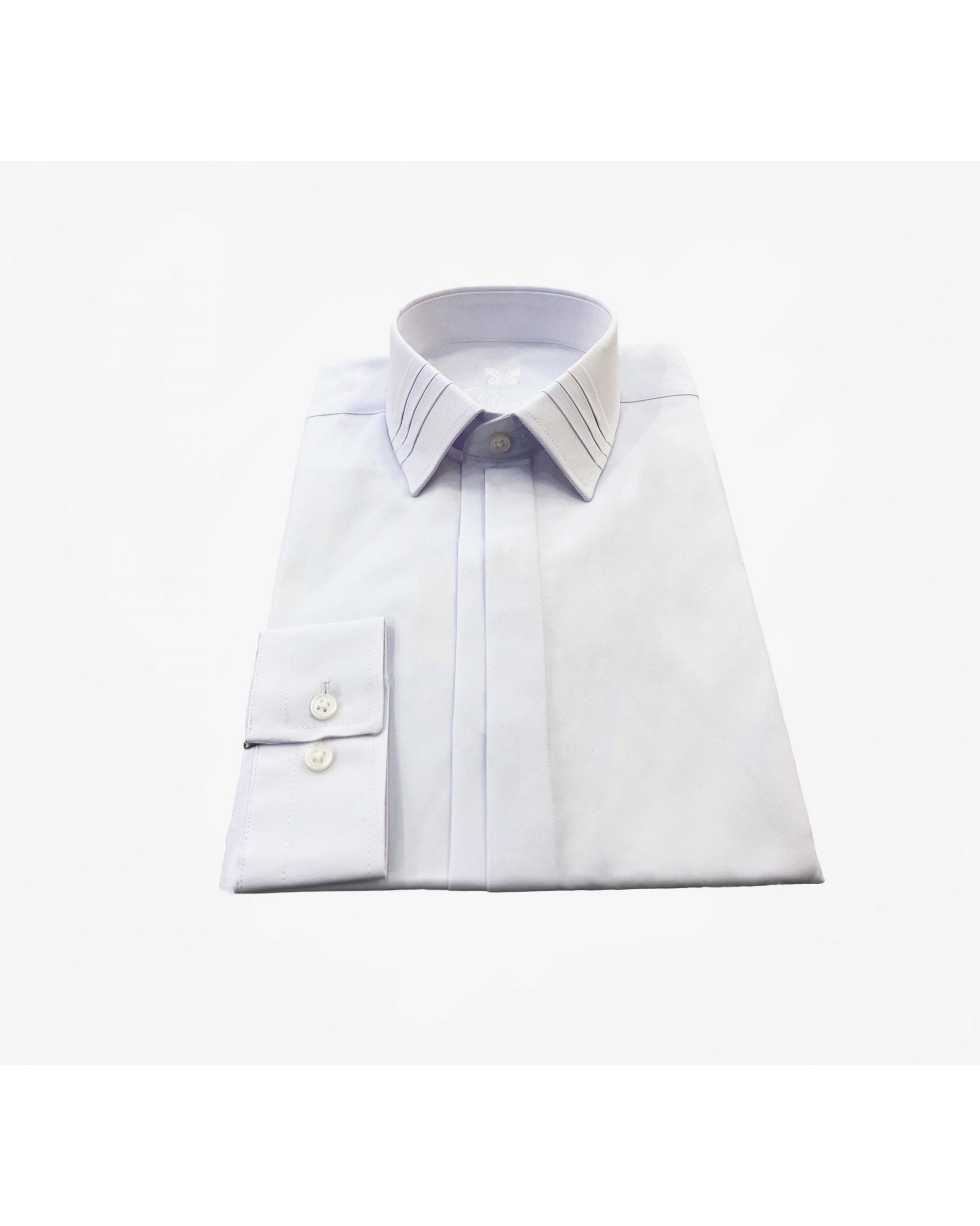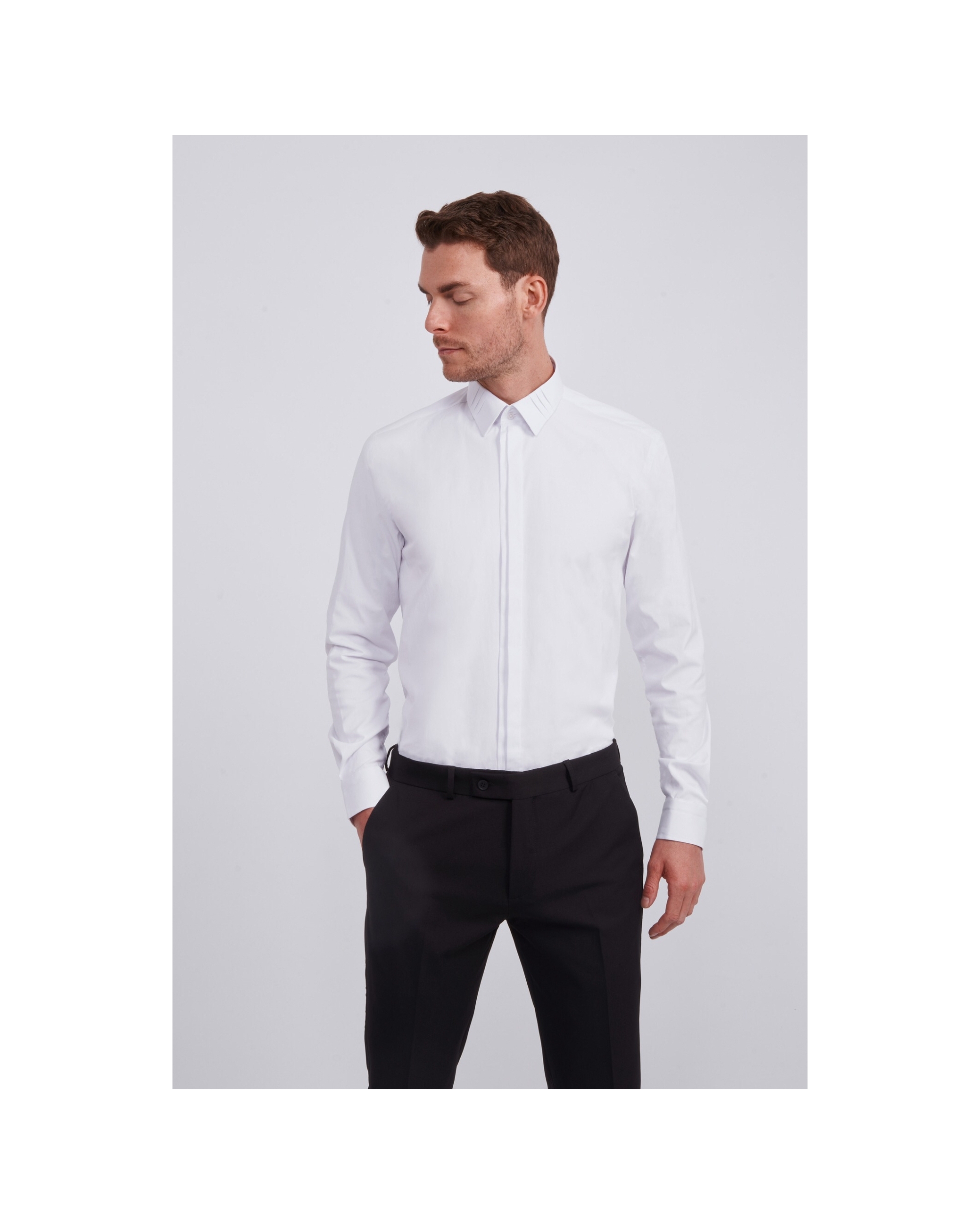 Cette chemise fabriquée dans un tissu ”facile à repasser” vous donnera un confort au quotidien. Son col français plissé vous assurera un look élégant et original. Patte de boutonnage cachée et poignet mixte (bouton de manchette possible).
