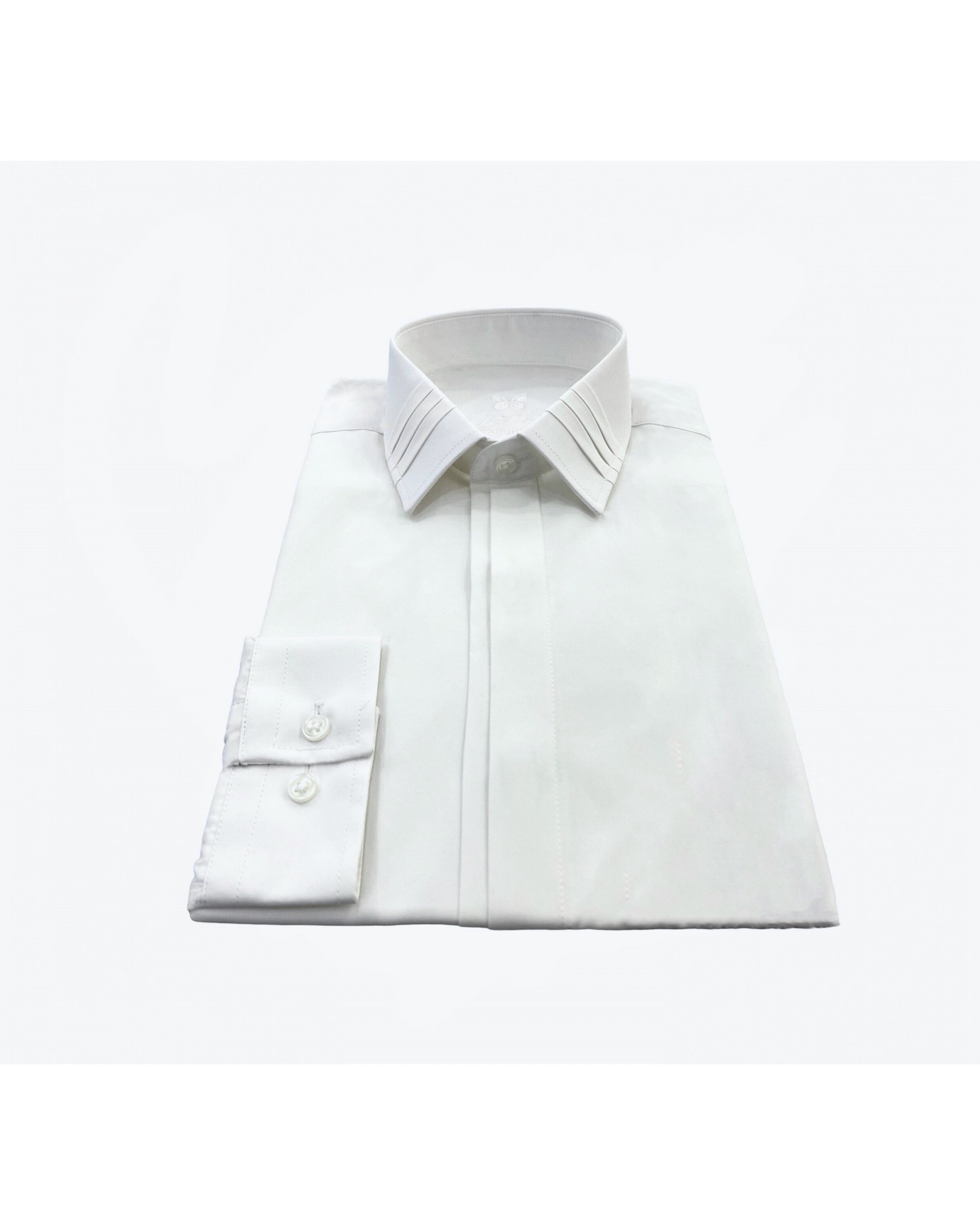 Cette chemise fabriquée dans un tissu ”facile à repasser” vous donnera un confort au quotidien. Son col français plissé vous assurera un look élégant et original. Patte de boutonnage cachée et poignet mixte (bouton de manchette possible).
