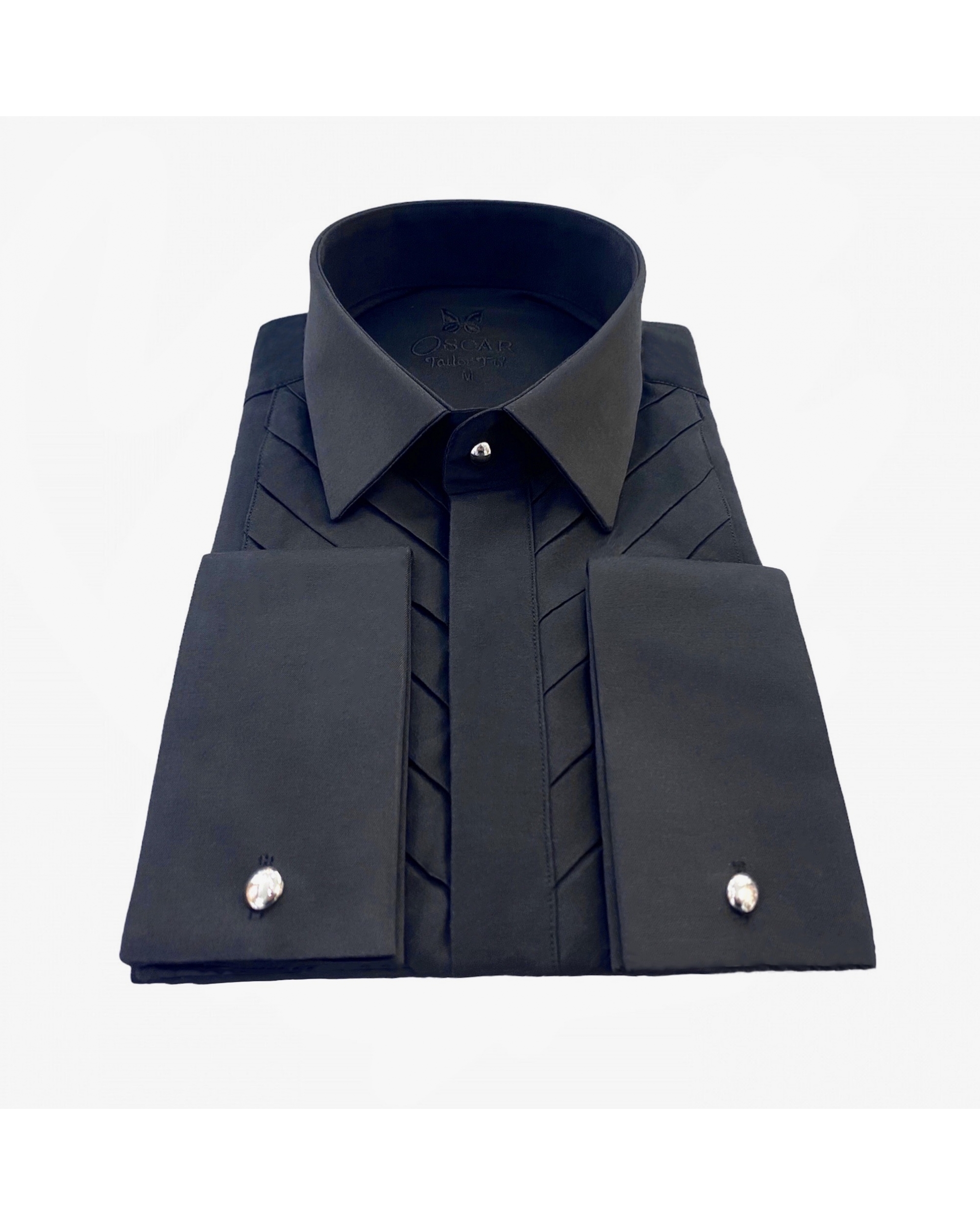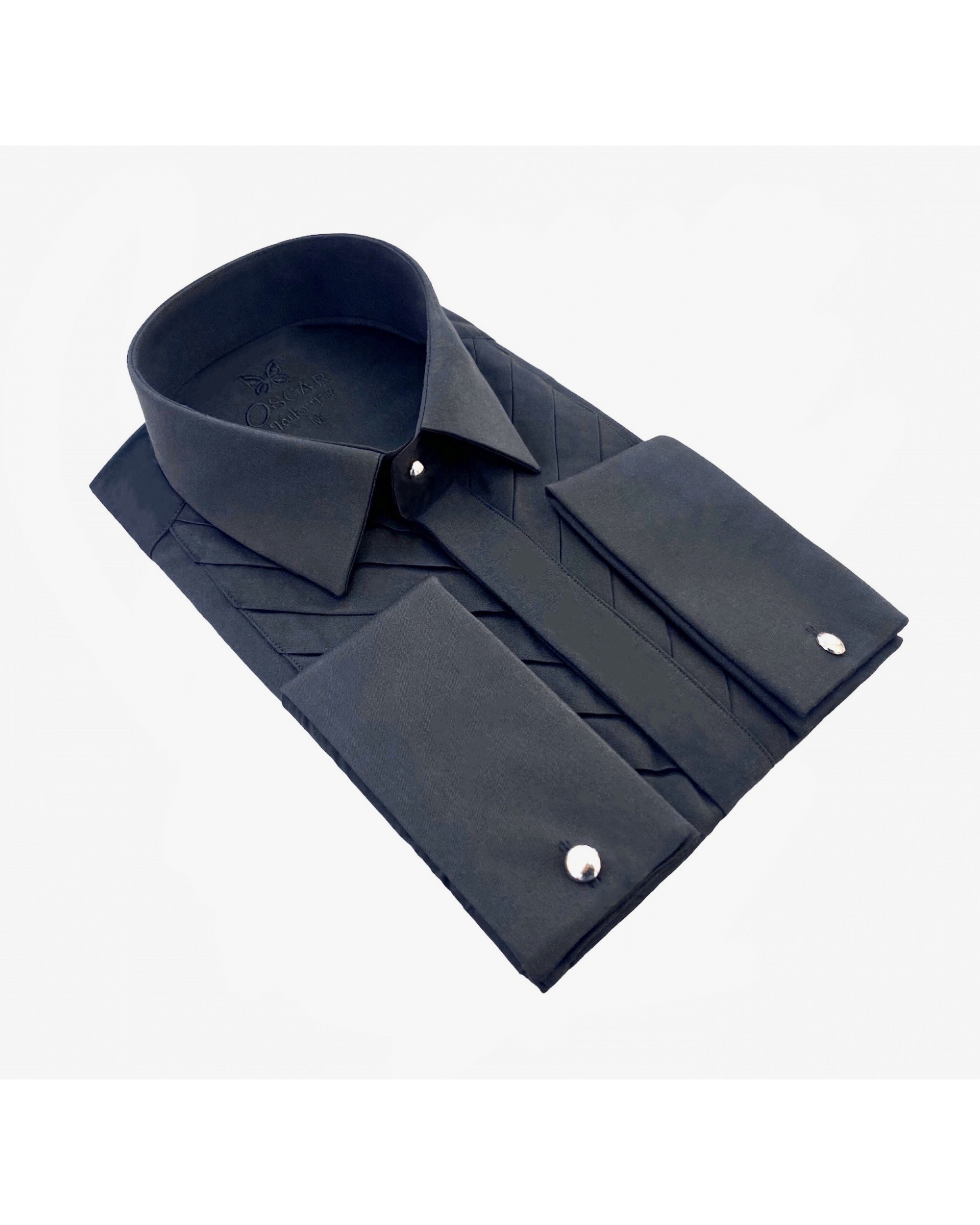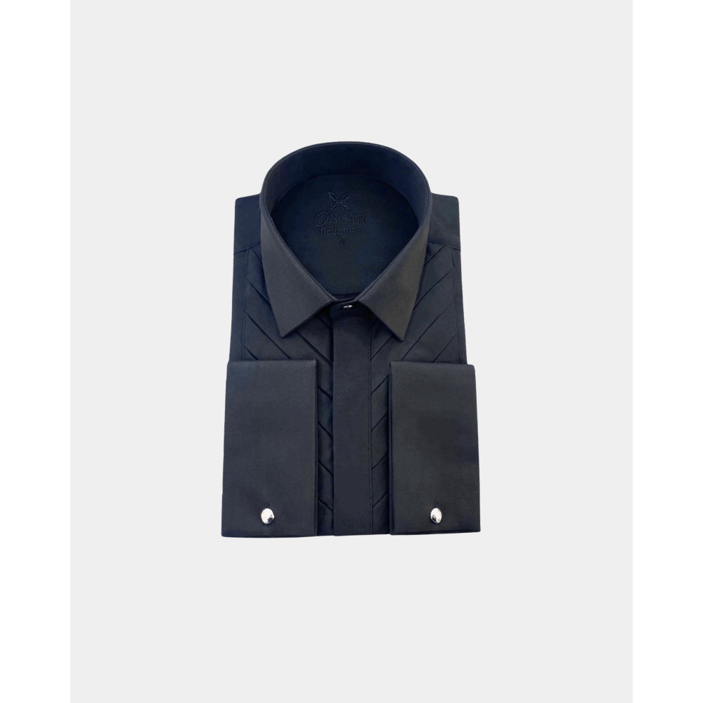 Cette chemise fabriquée dans un tissu "facile à repasser" vous donnera une élégance et un confort pour toute vos grandes occasions. Chemise col français avec plastron plissé et patte de boutonnages caché. Poignée mousquetaire avec bouton métal argenté amovible