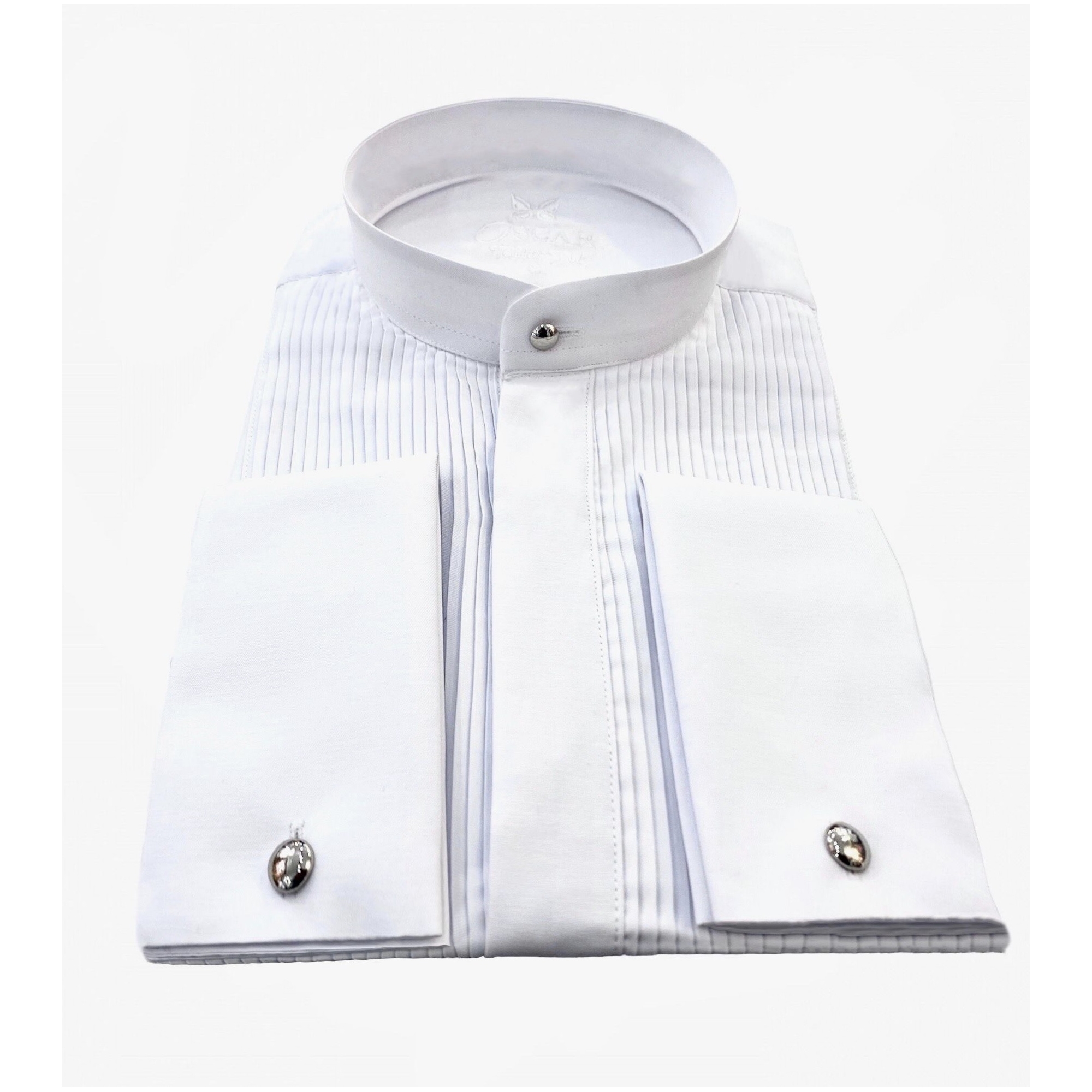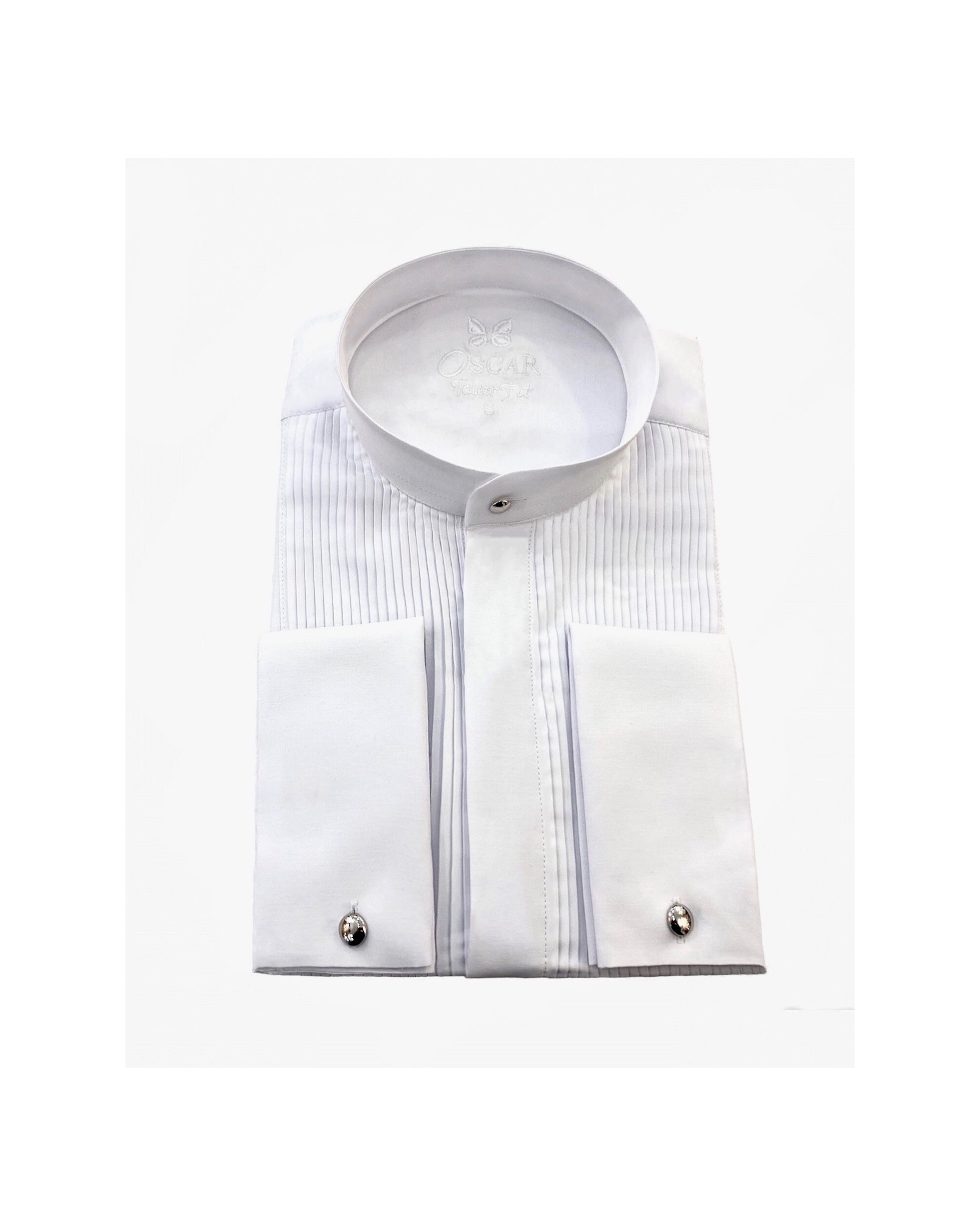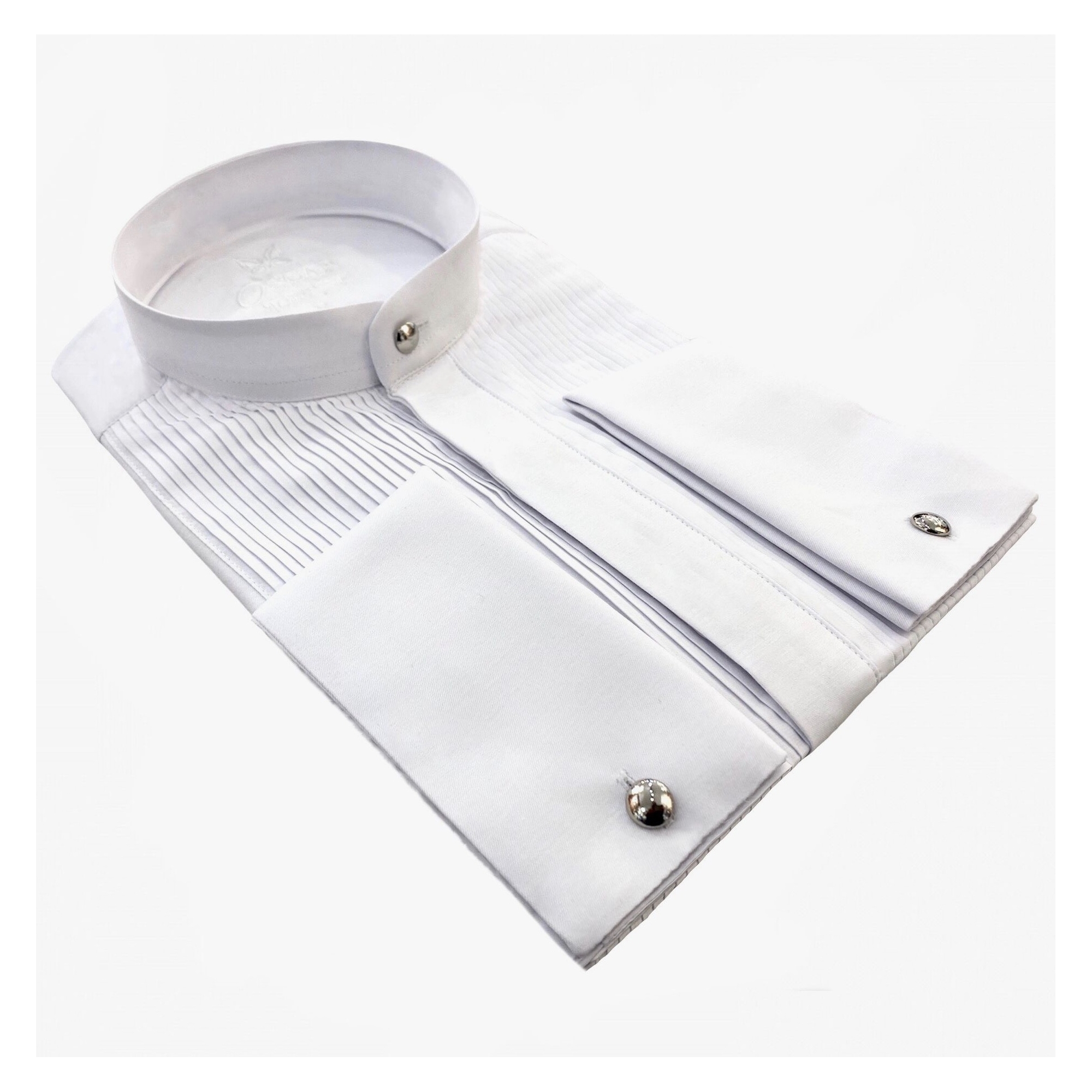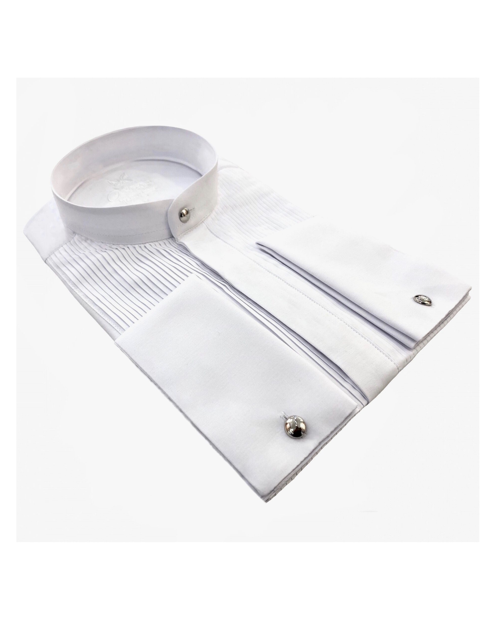 Cette chemise fabriquée dans un tissu "facile à repasser" vous donnera une élégance et un confort pour toute vos grandes occasions. Chemise col Mao avec plastron plissé et patte de boutonnages caché. Poignée mousquetaire avec bouton métal argenté amovible
