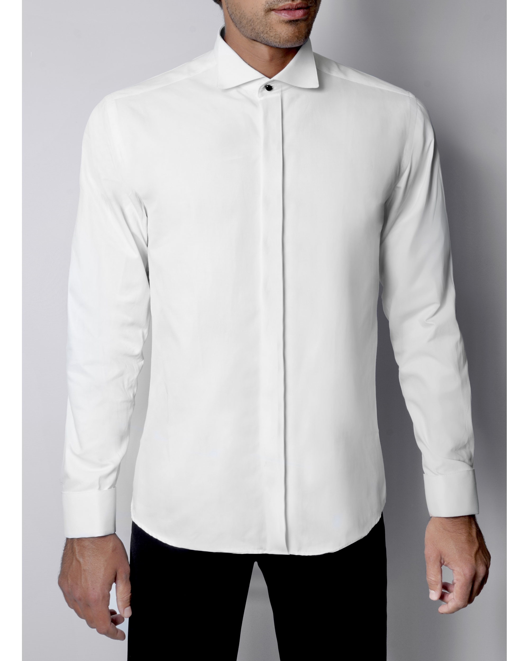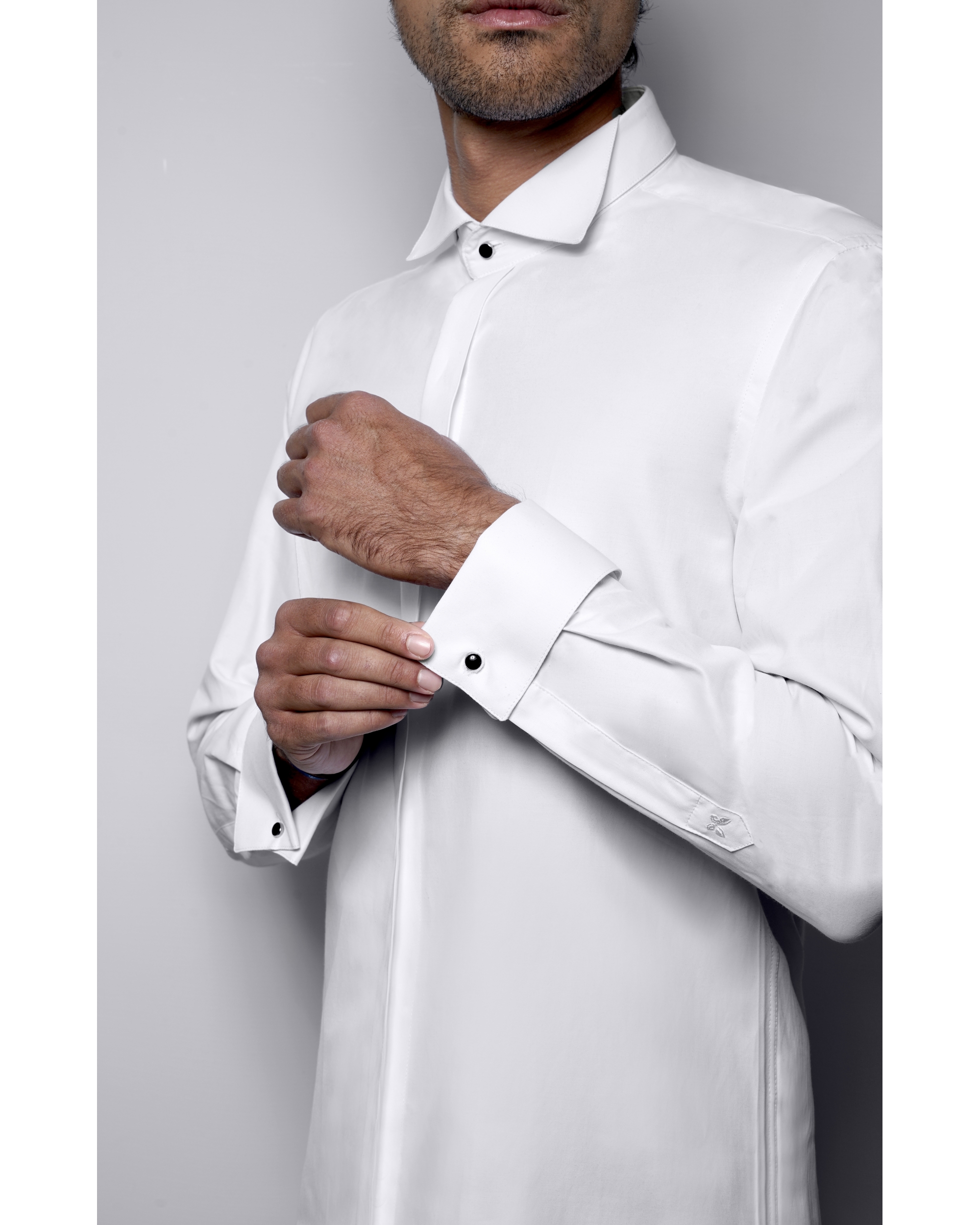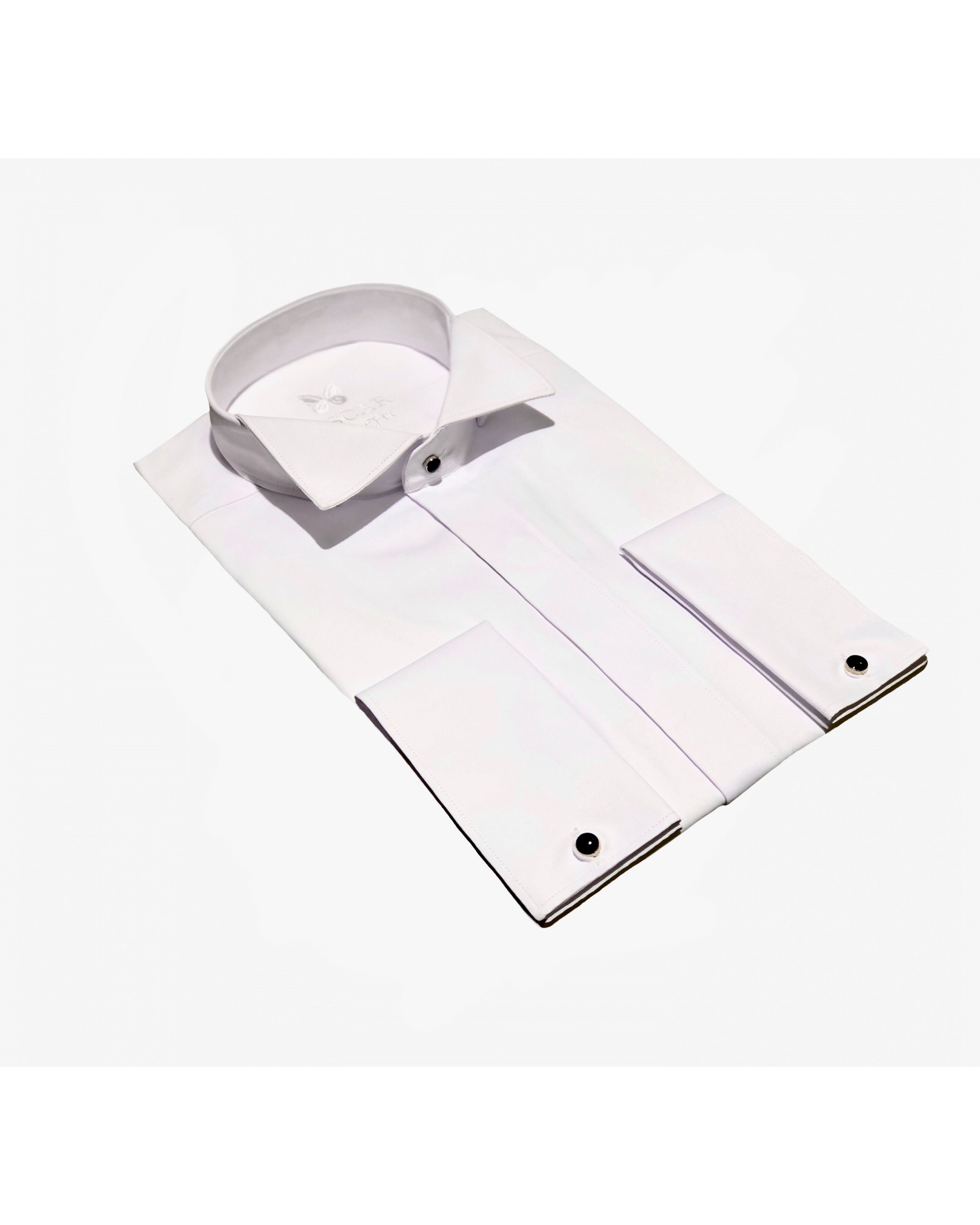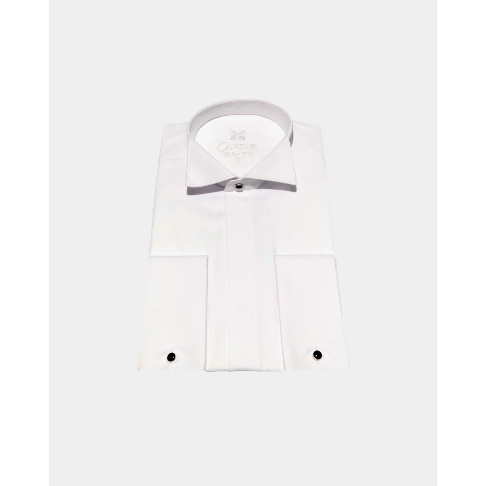 Cette chemise fabriquée dans un tissu "facile à repasser" vous donnera une élégance et un confort pour toute vos grandes occasions. Chemise col cassé avec patte caché pour le noeud pap + poignet mousquetaire.