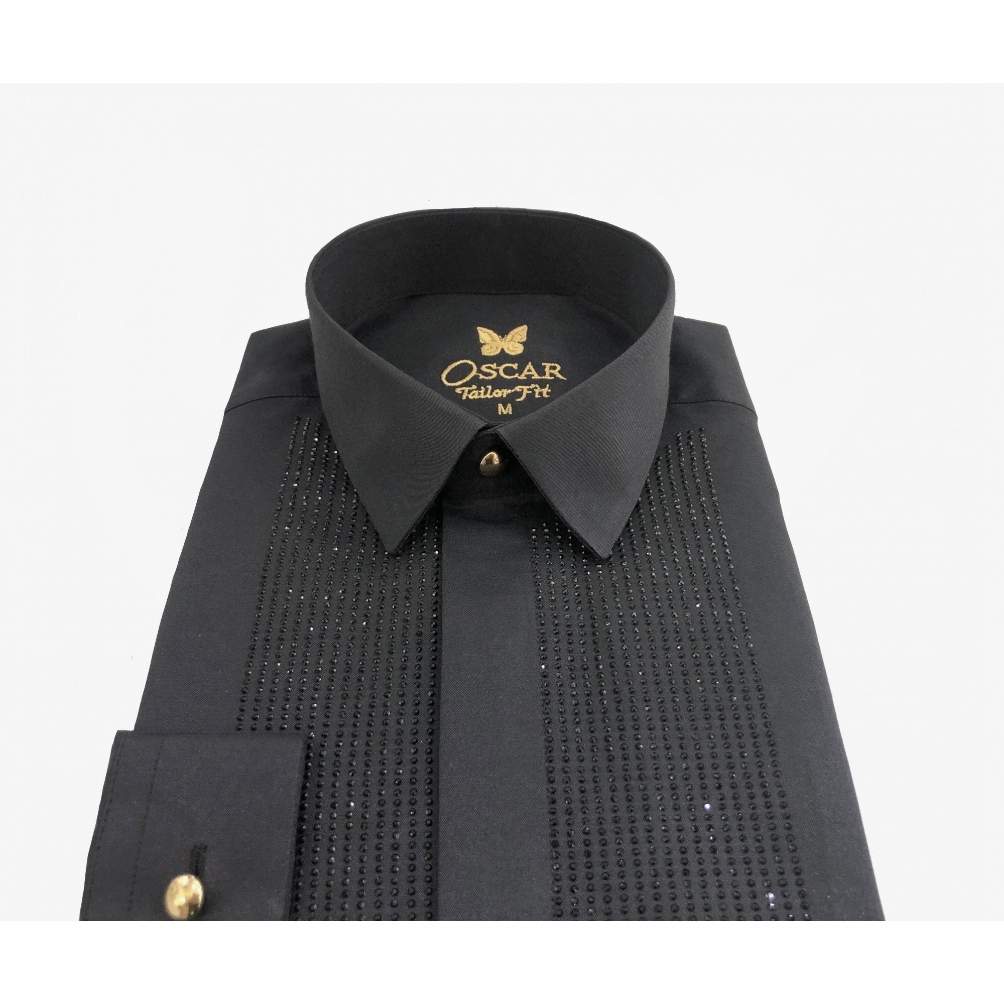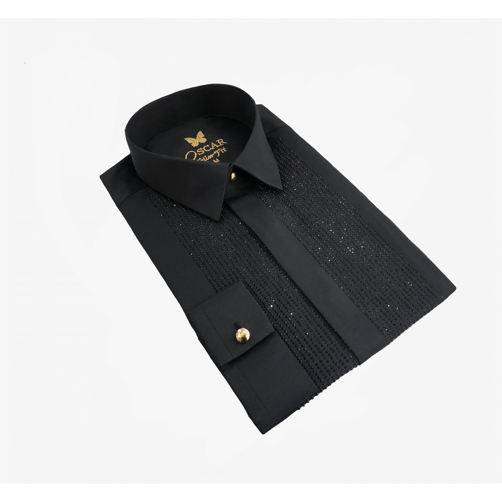 Cette chemise fabriquée dans un tissu "facile à repasser" pour un confort irréprochable vous donnera un style unique avec élégance et originalité. Elle sera votre alliée pour toute vos grandes occasions et sorties. Chemise col français avec boutons sous col pour un bon maintien. Plastron en strass blanc + boutons métal amovible.