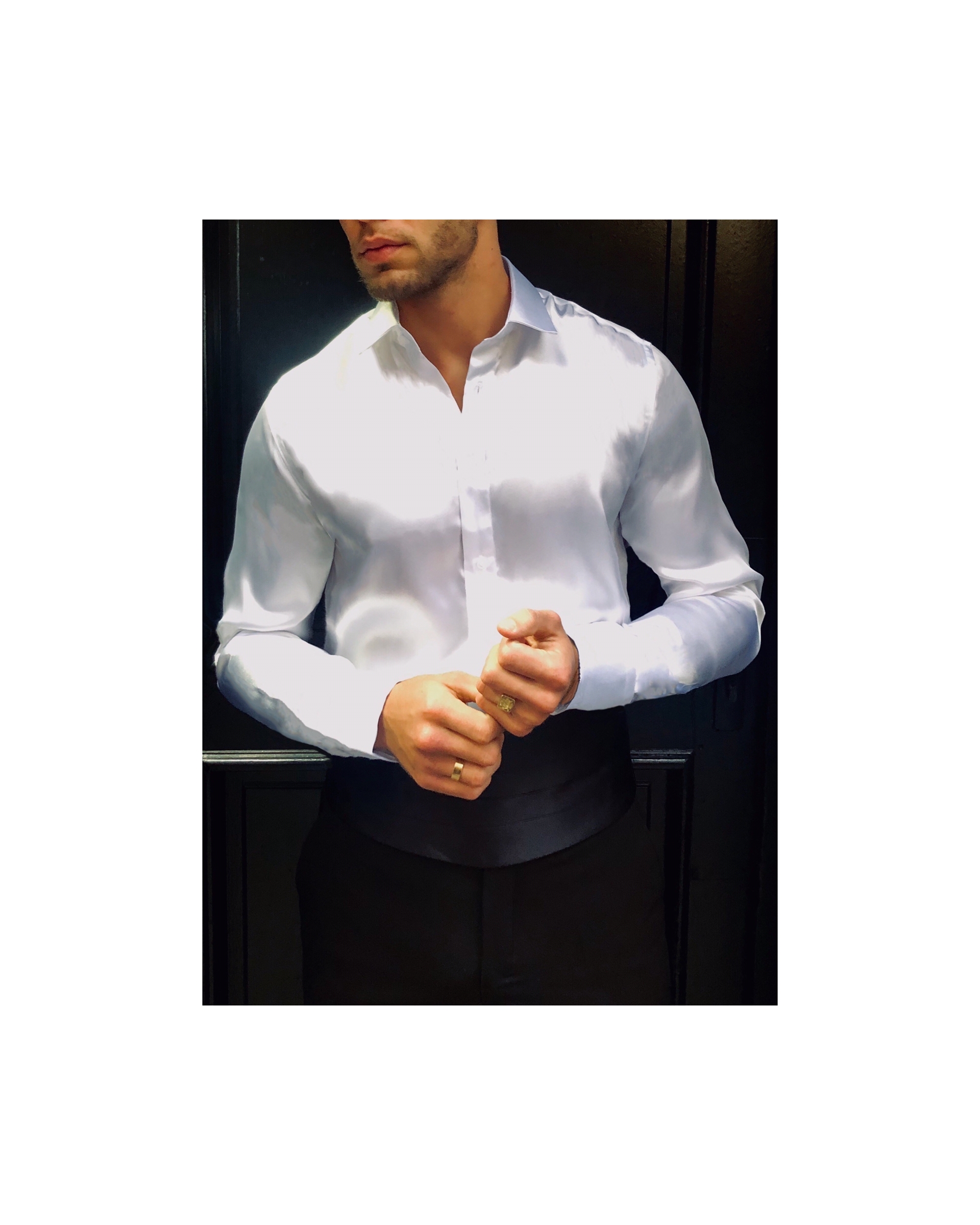 Cette chemise fabriquée dans un tissu soyeux et "facile à repasser" pour un confort irréprochable vous donnera un style unique avec élégance et originalité. Elle sera votre alliée pour toute vos grandes occasions et sorties. Chemise col français avec boutons sous col pour un maintien optimal. Poignet mixte ( bouton manchette possible )