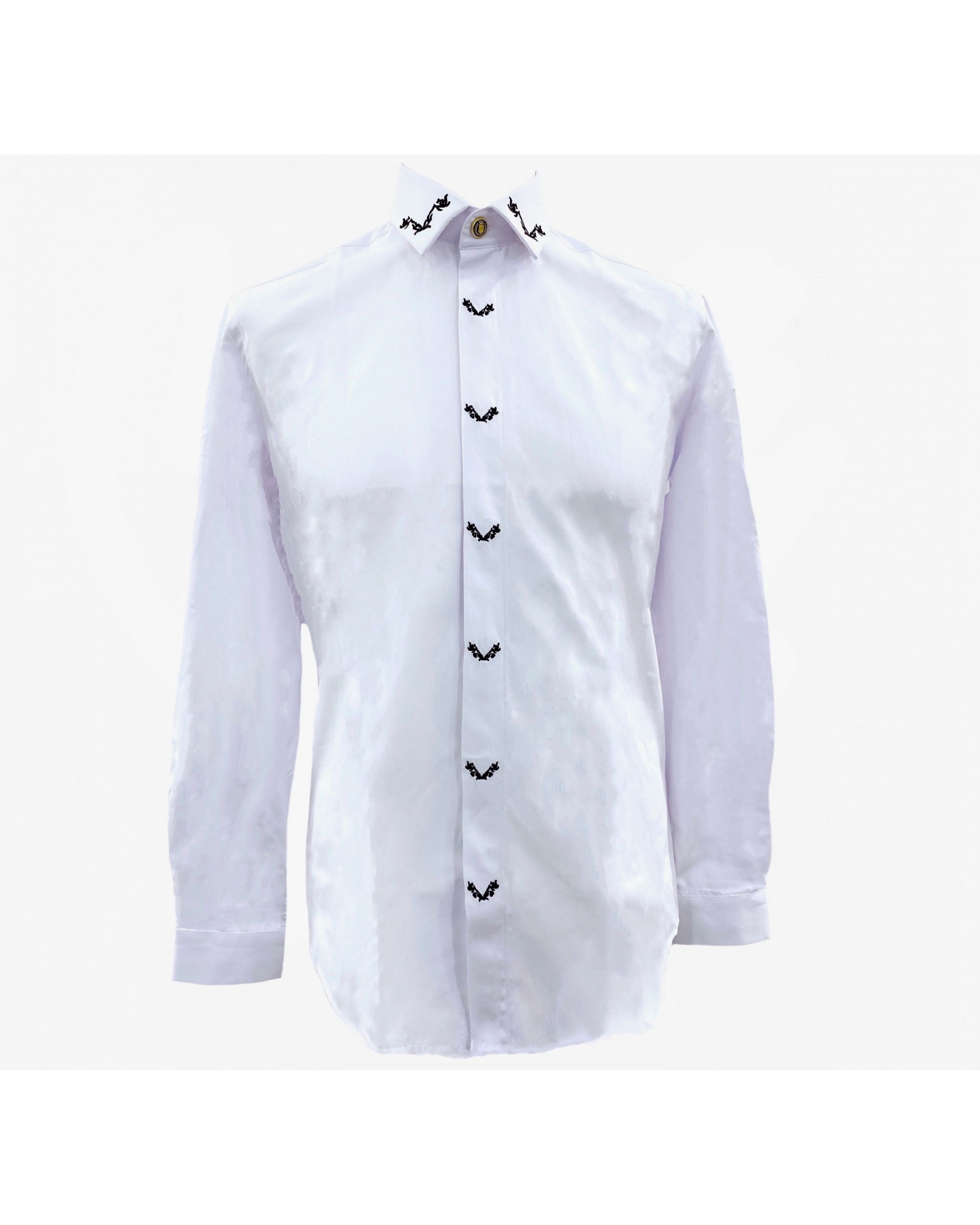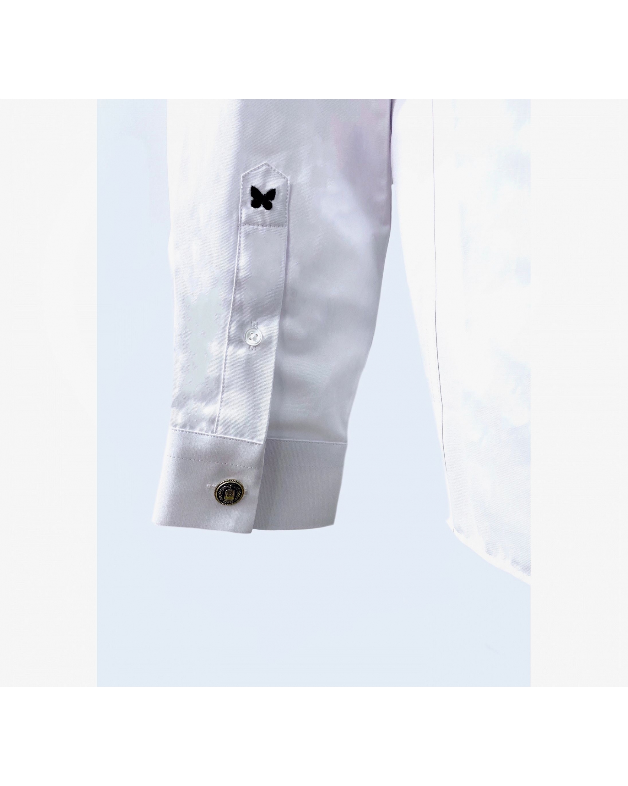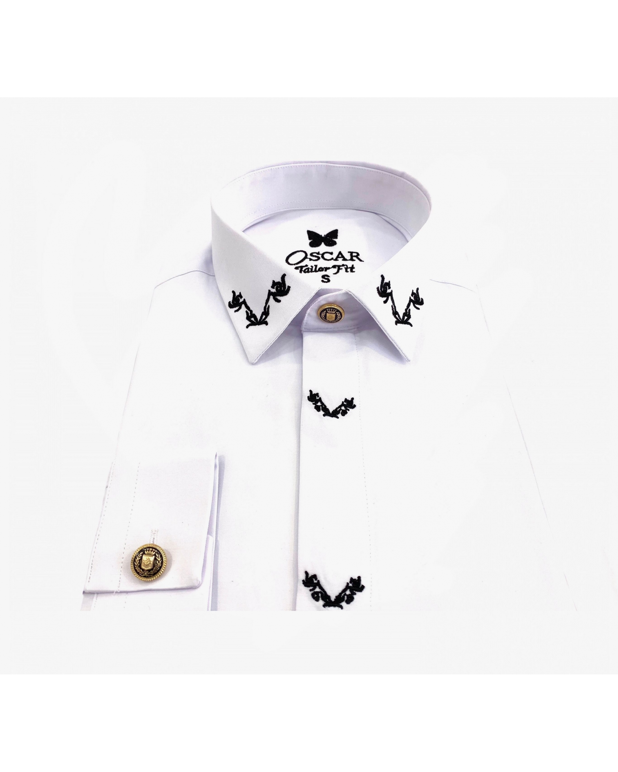 Cette chemise fabriquée dans un tissu "facile à repasser" pour un confort irréprochable vous donnera un style unique avec élégance et originalité. Elle sera votre alliée pour toute vos grandes occasions et sorties. Chemise col français avec broderie au col et patte de boutonnage + boutons métal.