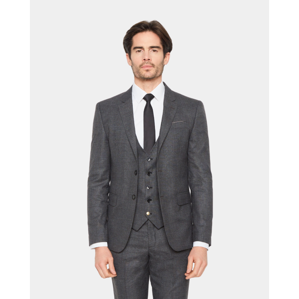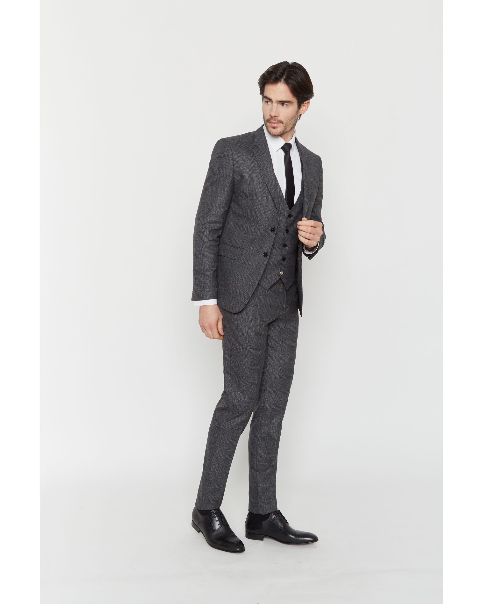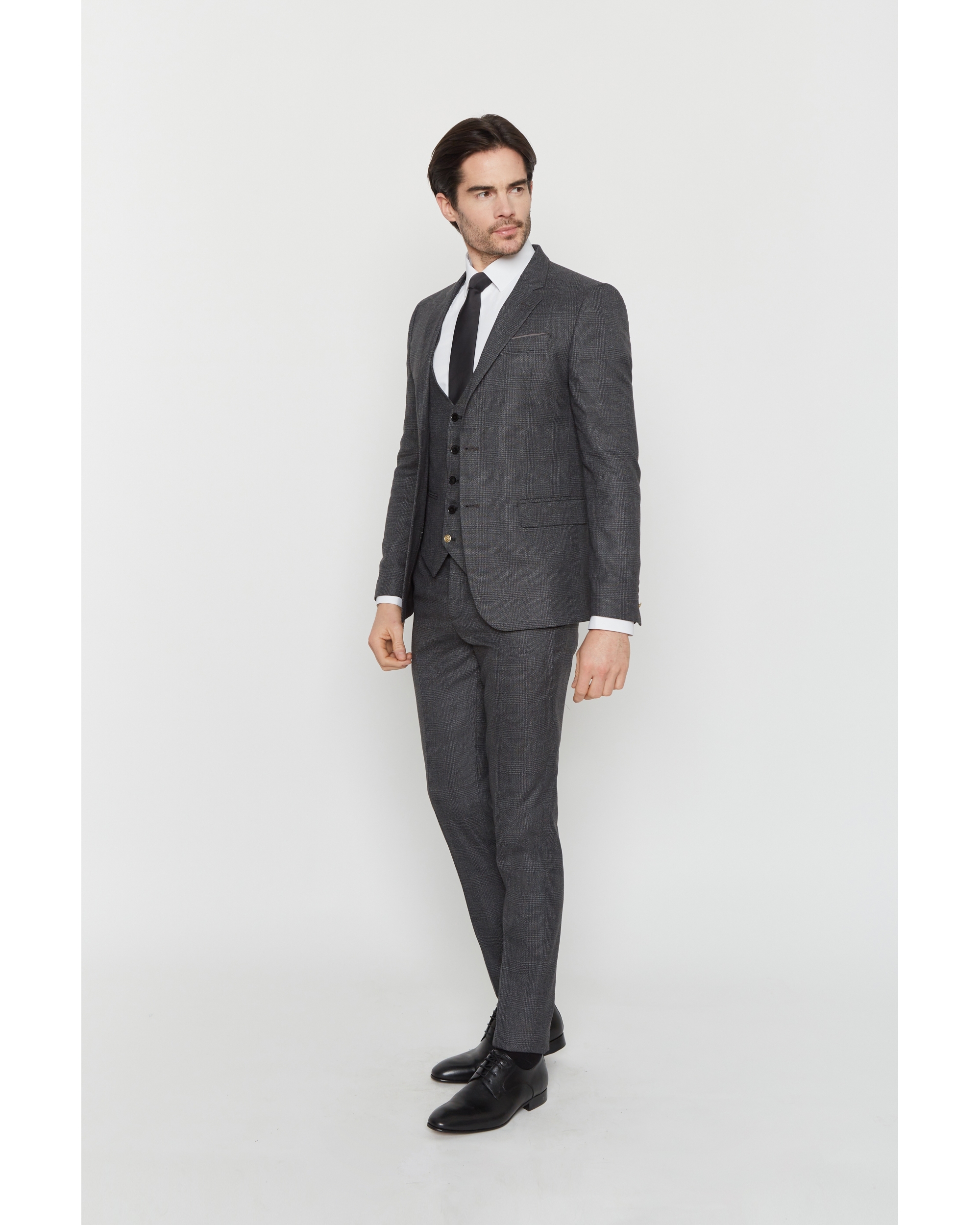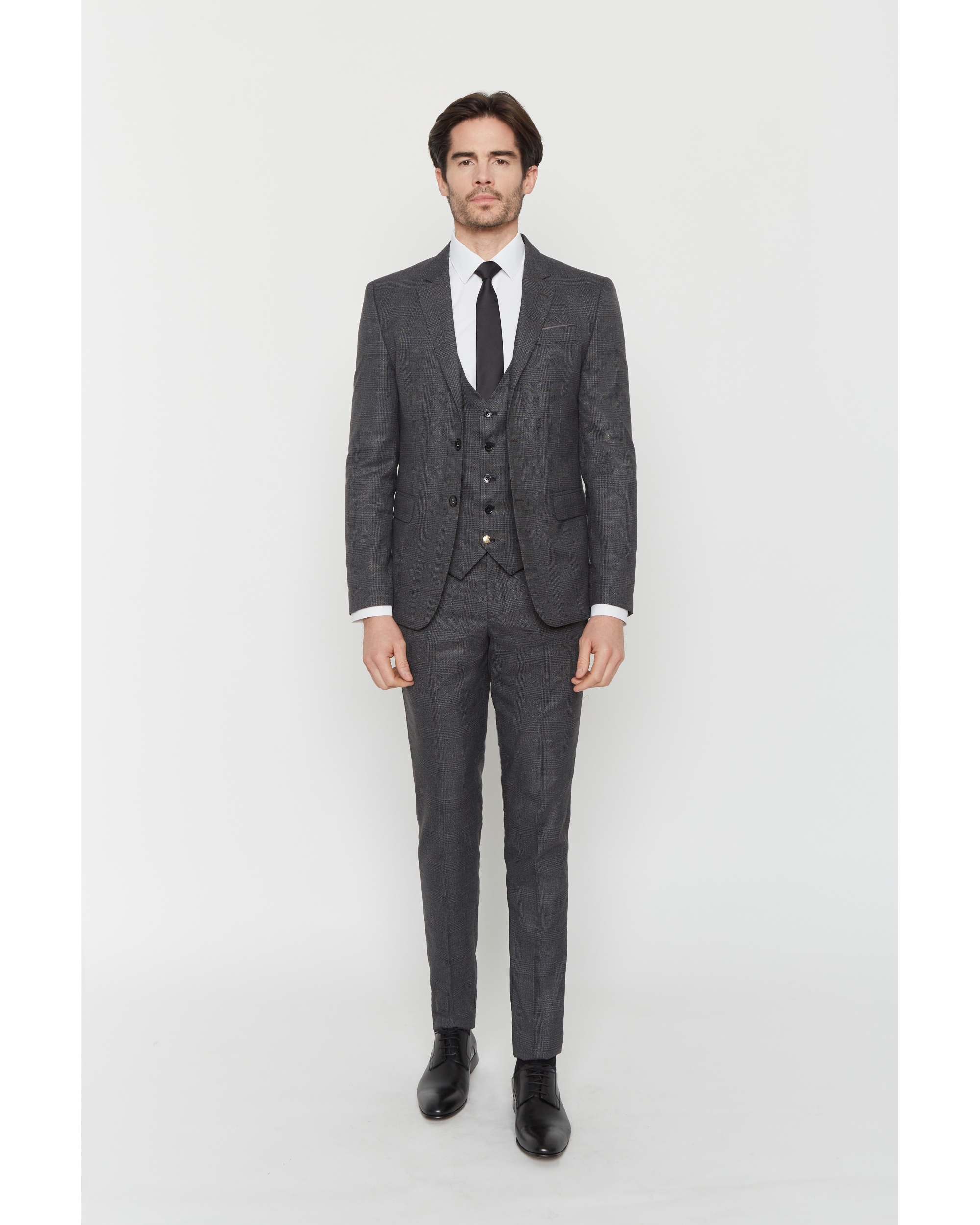 Ce costume en laine mélangée comporte du Lycra pour un confort optimum. Avec une coupe ajustée, cet ensemble se compose d’une veste à col cranté aux 2 poches rabat sur le devant, d’un pantalon zippé poche italienne et d un gilet assorti.
