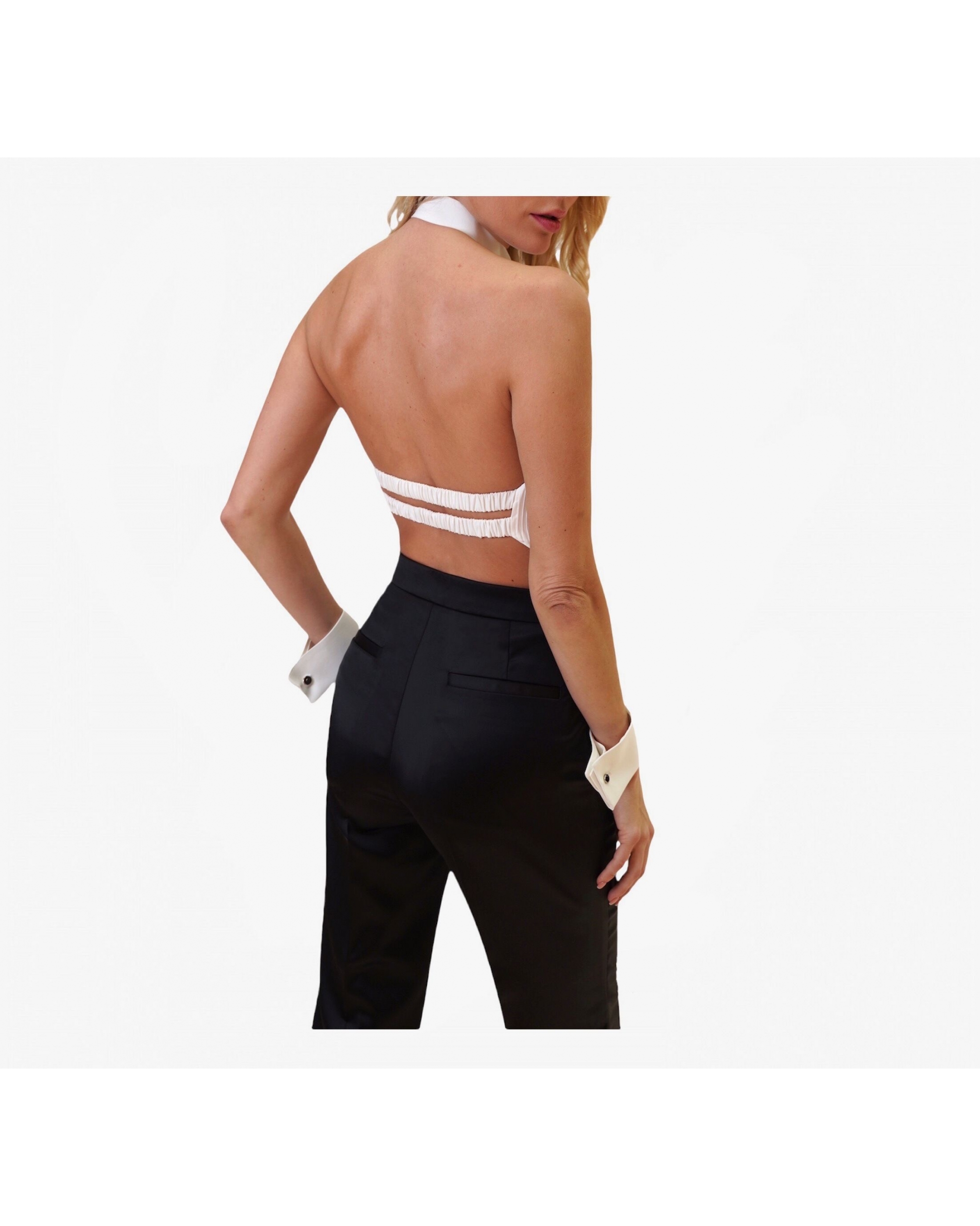 Plastron Plissé ivoire Femme + manchettes. Taille Unique s’adapte à toute les morphologies grâce à ses élastiques dans dos et au coup.
