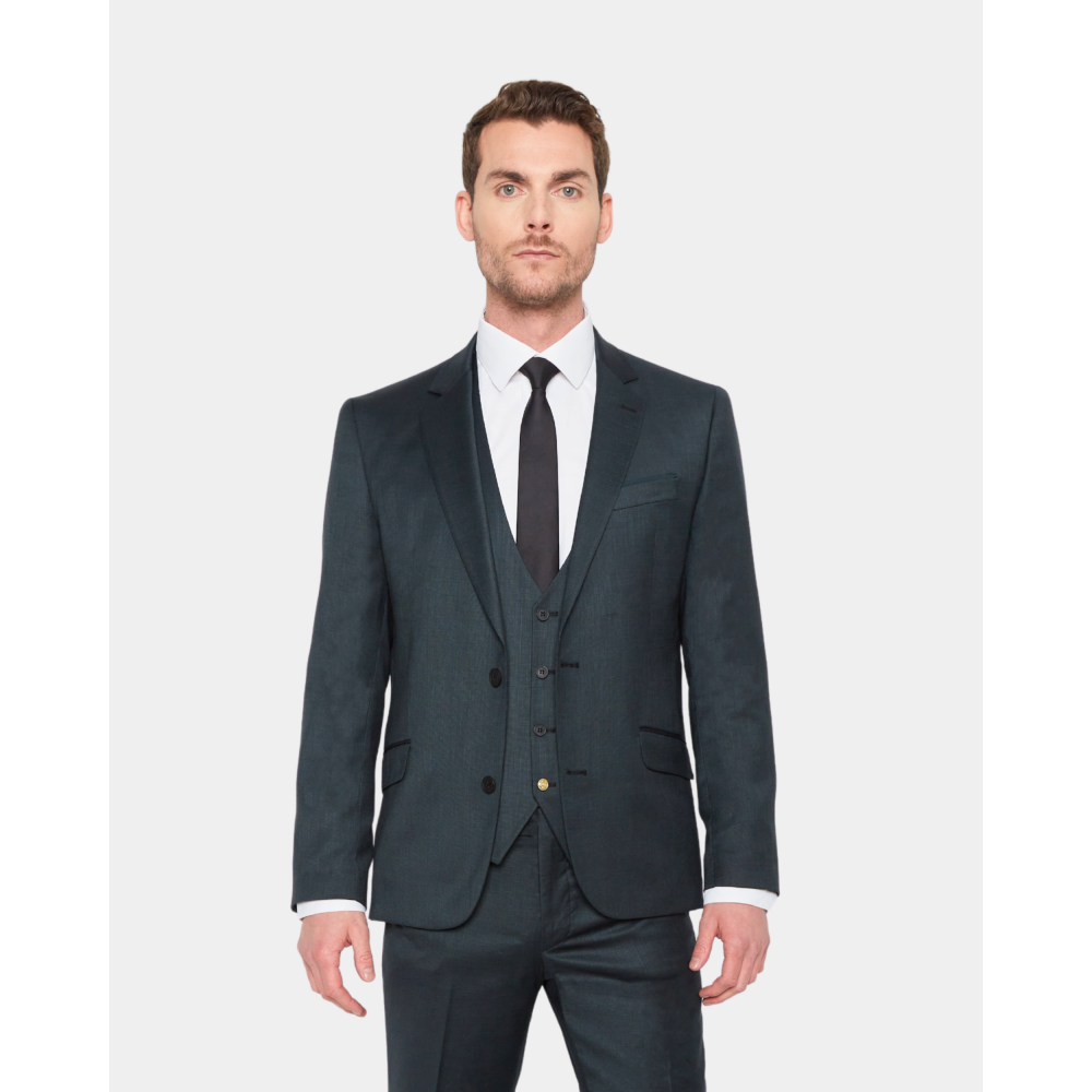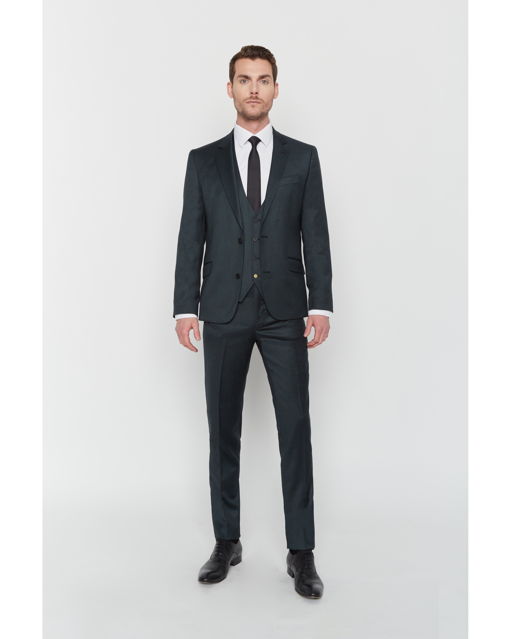 Ce costume en laine mélangée comporte du Lycra pour un confort optimum. Avec une coupe ajustée, cet ensemble se compose d’une veste à col cranté aux 2 poches rabat sur le devant, d’un pantalon zippé poche italienne et d un gilet assorti.