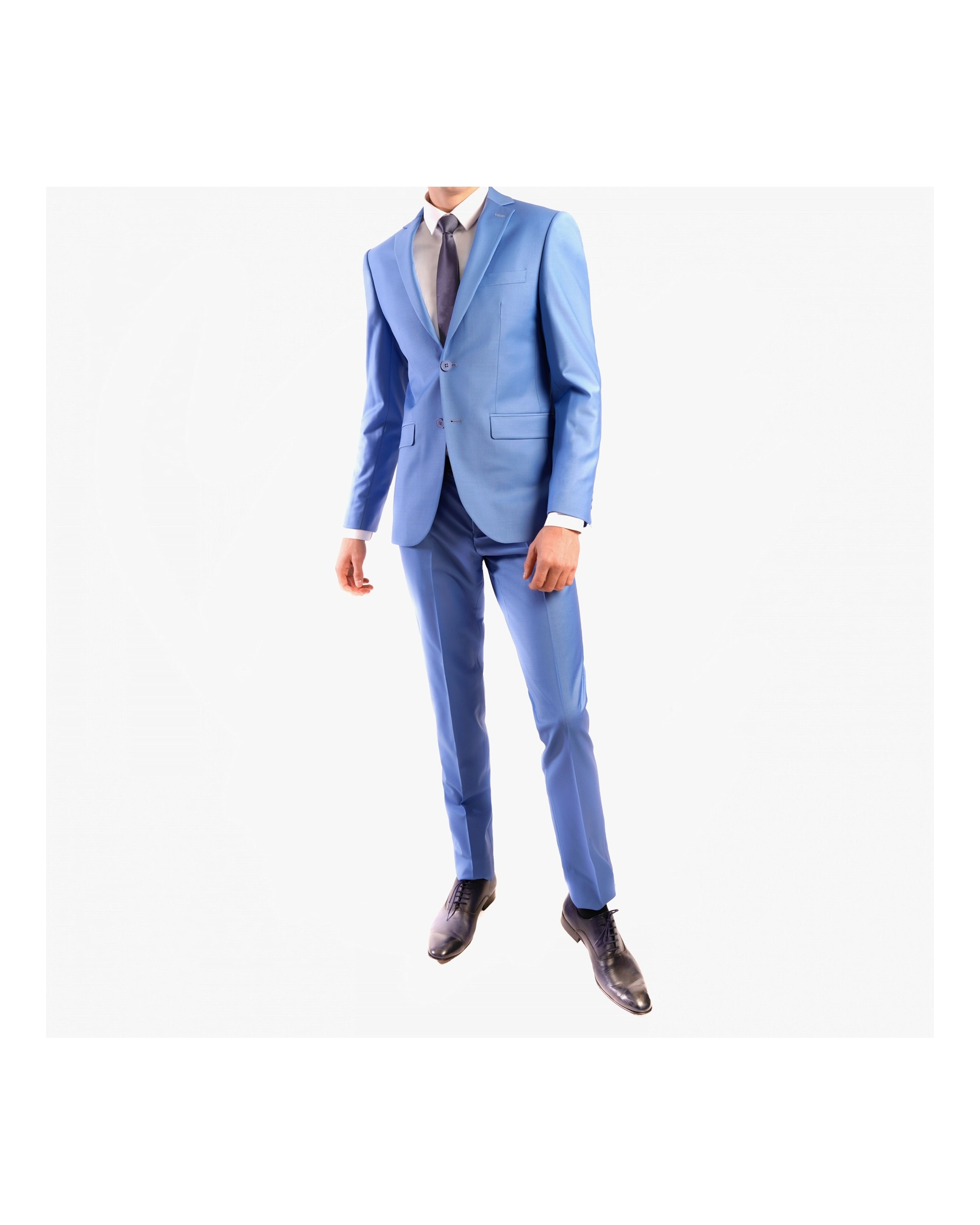 Ce costume en laine 150's comporte du Lycra pour un confort optimum. Avec une coupe ajustée, cet ensemble se compose d’une veste à col cranté aux 2 poches rabat sur le devant et d’un pantalon zippé poche italienne.