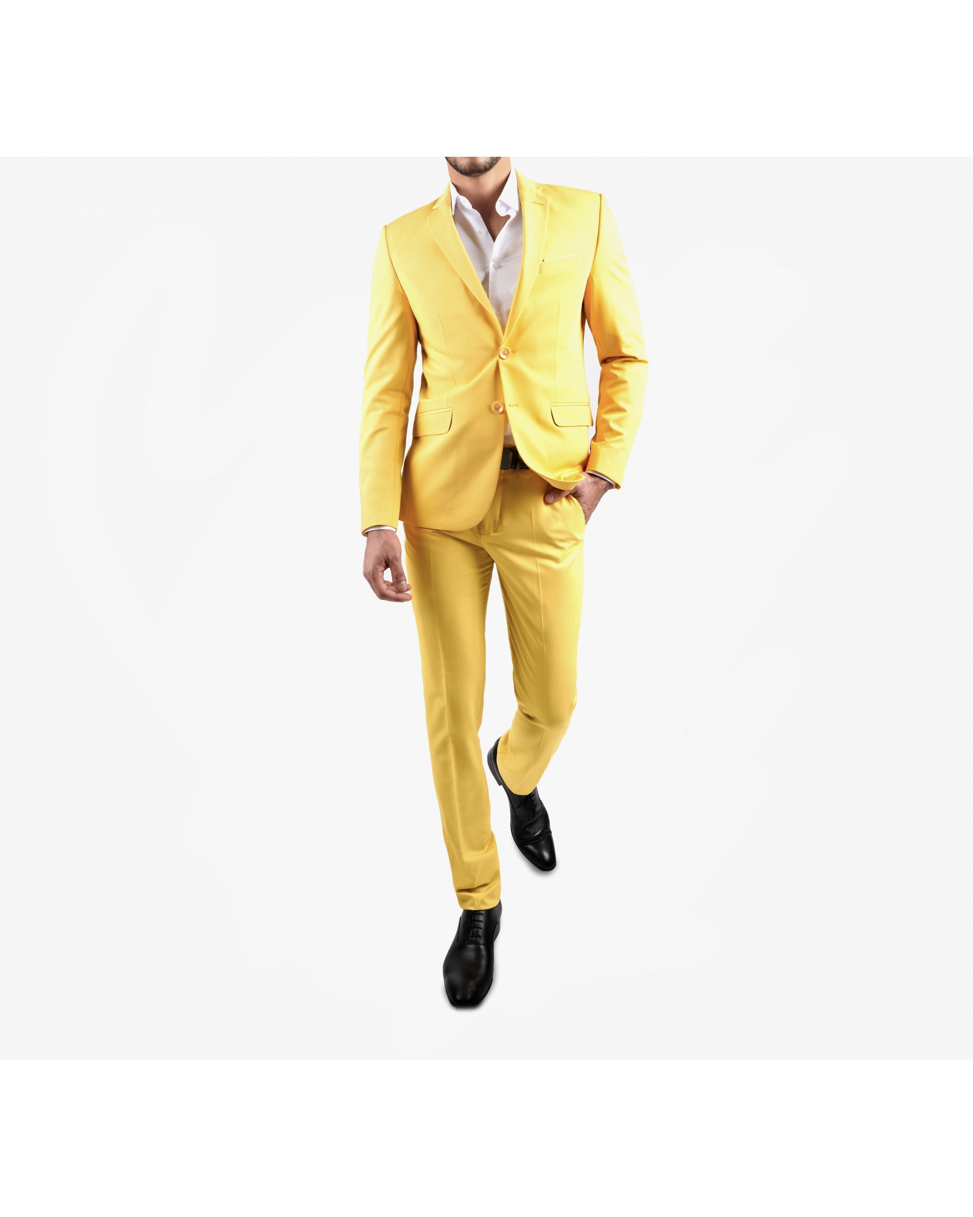 Ce costume en laine mélangée comporte du Lycra pour un confort optimum. Avec une coupe ajustée, cet ensemble se compose d’une veste à col cranté aux 2 poches rabat sur le devant, d’un pantalon zippé poche italienne