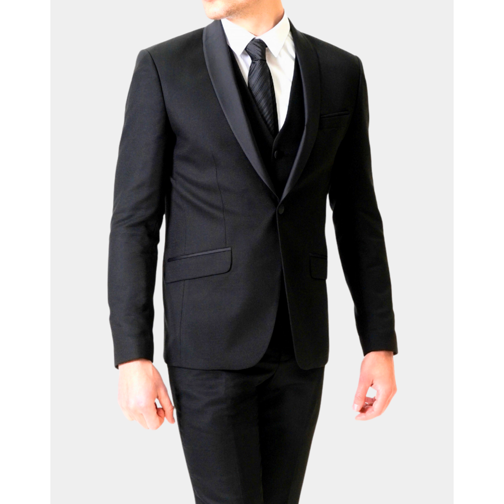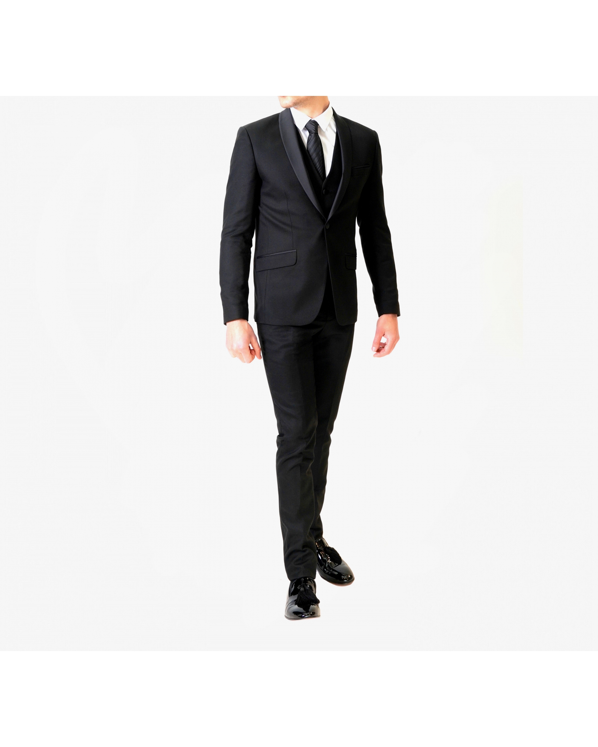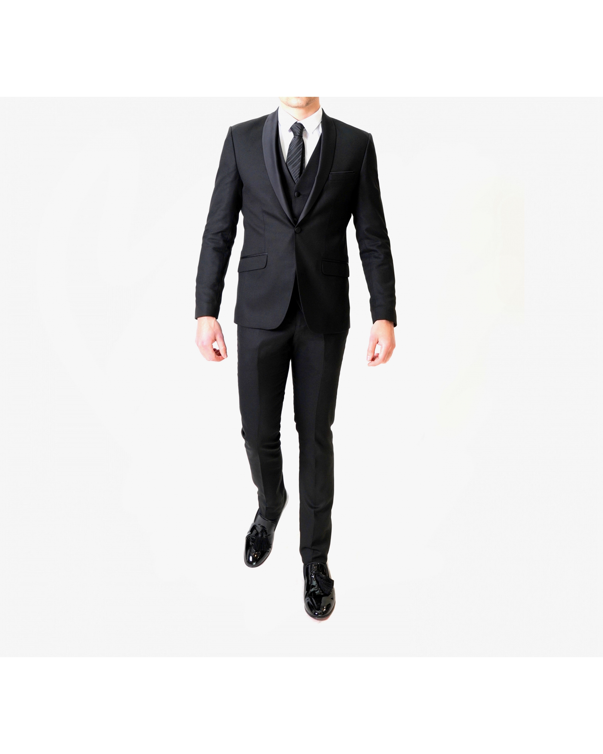 Smocking col chale 3 pieces.Tissu italien fantaisie.Vest cintree et pantalon slim