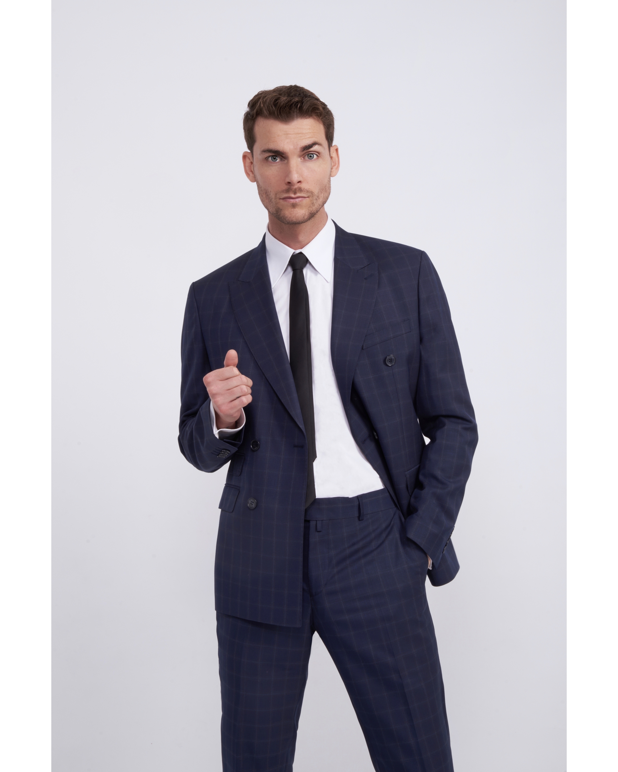 Costume croisé,coupe italienne.Tissu en leger prince de galles?laine avec du lycra,tres agreable a porter