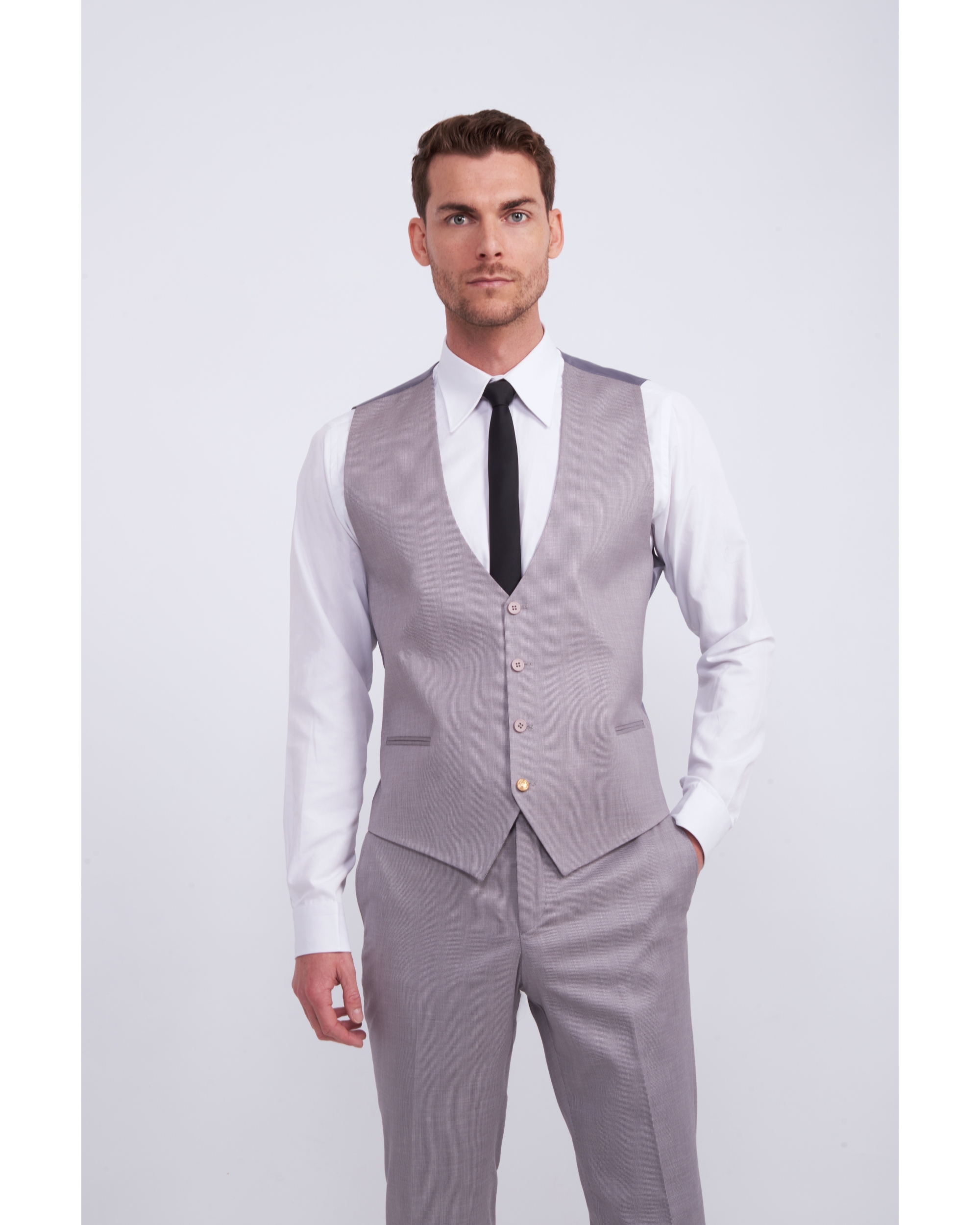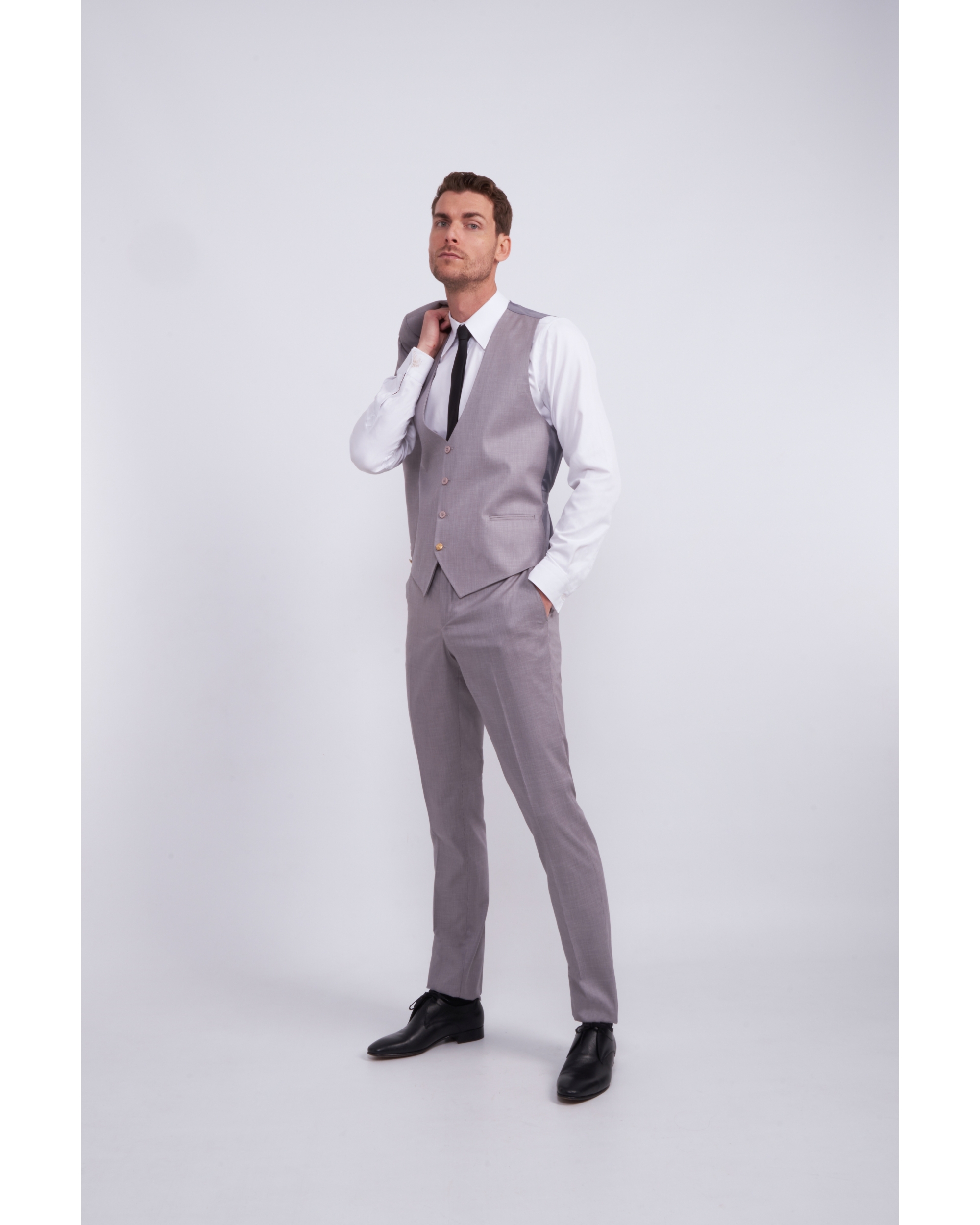 Ce costume en laine mélangée comporte du Lycra pour un confort optimum. Avec une coupe ajustée, cet ensemble se compose d’une veste à col cranté aux 2 poches rabat sur le devant , d’un pantalon zippé poche italienne et d un gilet assorti.