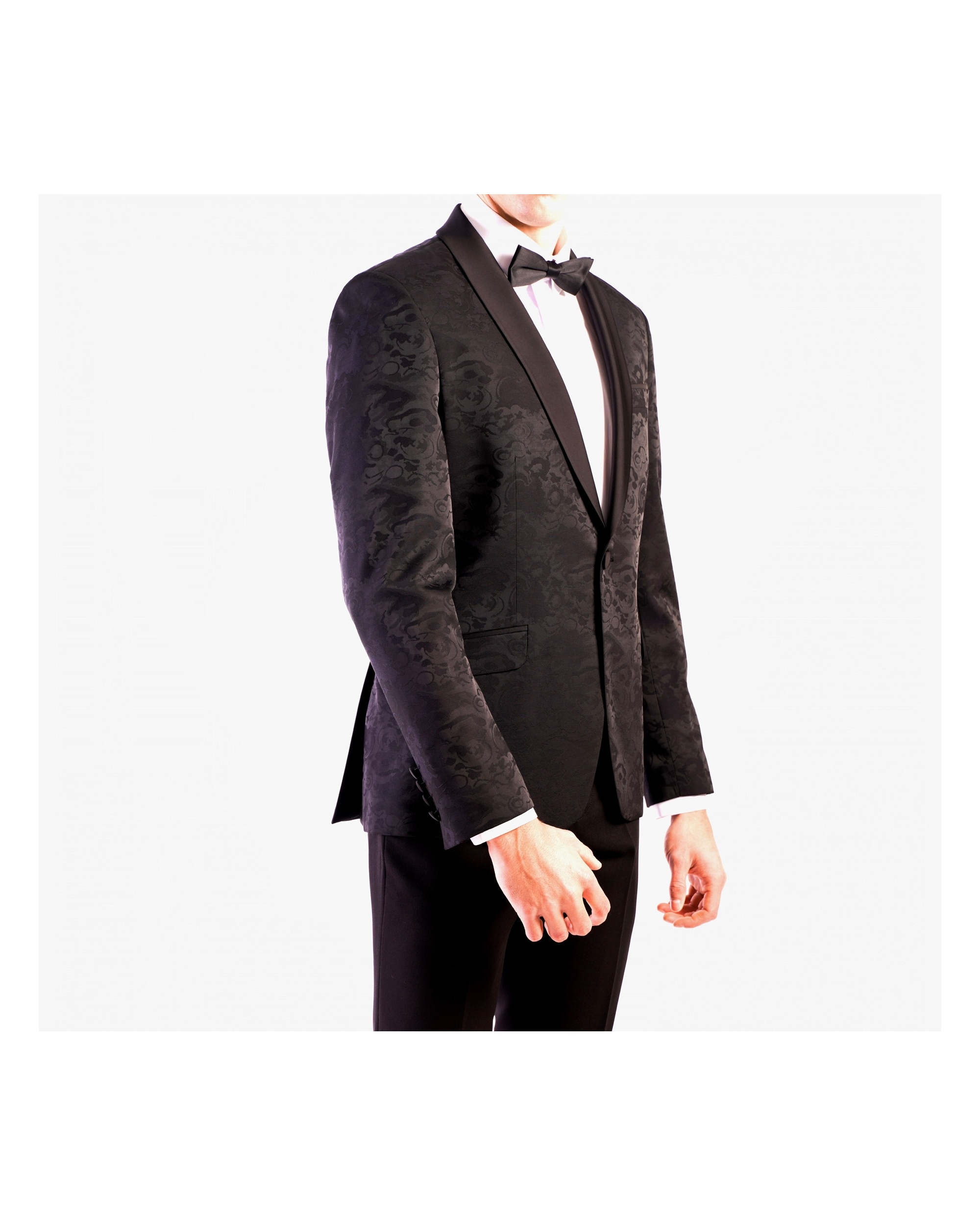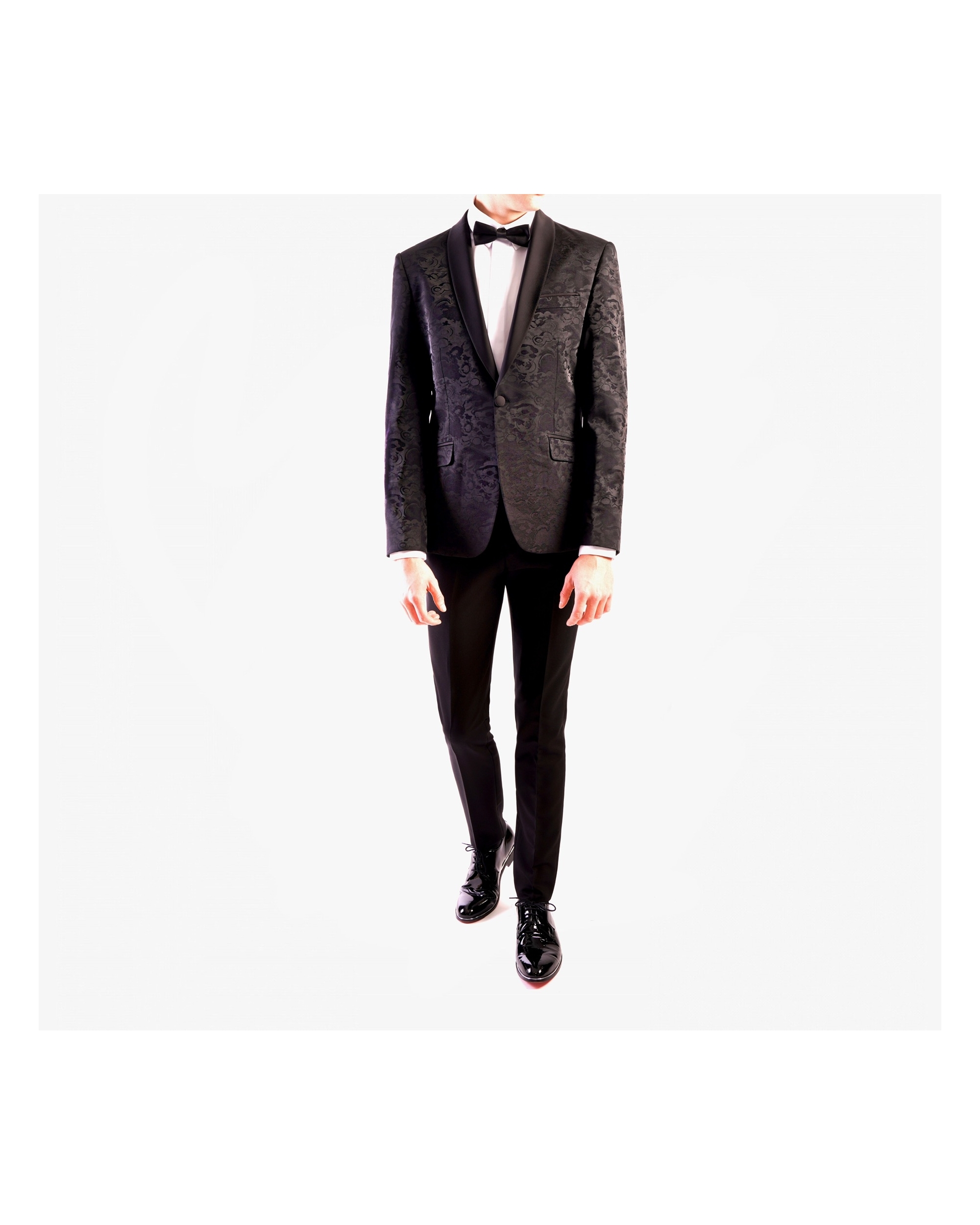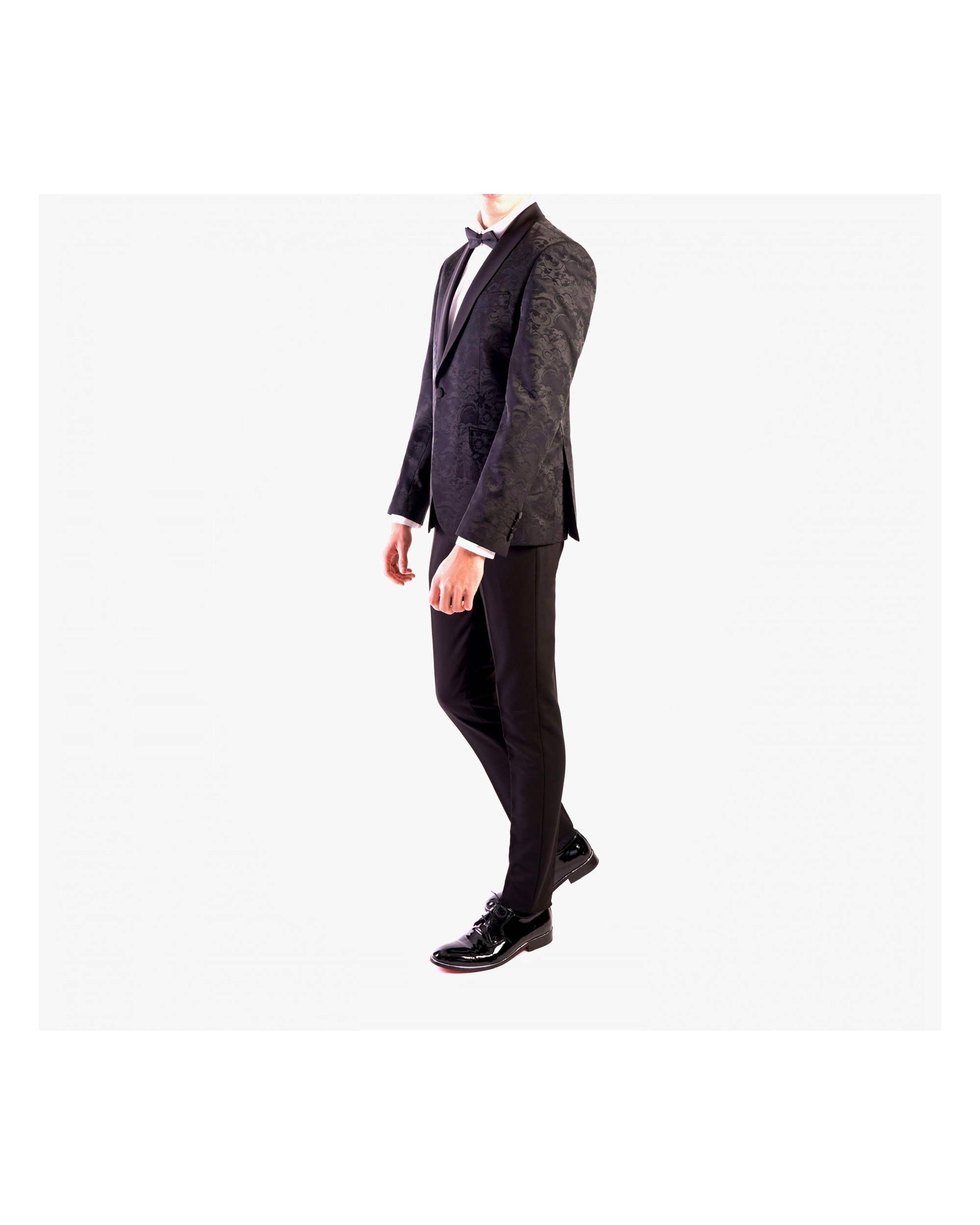 Ce smoking en laine mélangé comporte du Lycra pour un confort optimum. Avec une coupe ajustée cet ensemble se compose d’une veste à col pointe en satin 2 poches rabat et d’un pantalon zippé à 2 poches italienne.